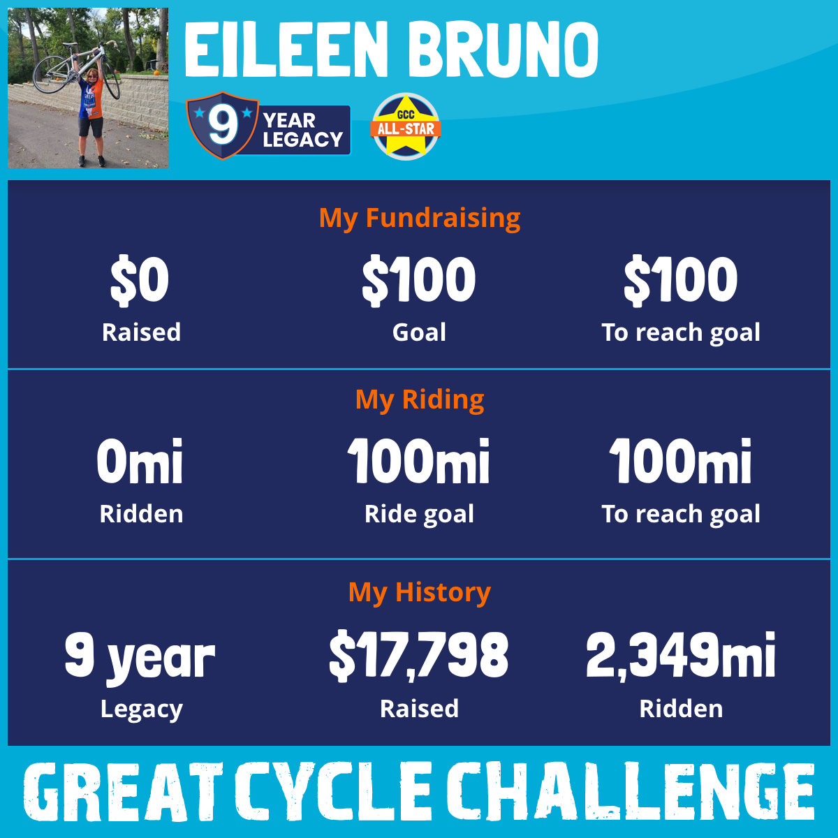 I am hoping to reach a total of 2,500 miles and 20,000$ total for all the years of riding. That means I need to ride 151 miles and raise 2,202 dollars this year! Hope you all can help.