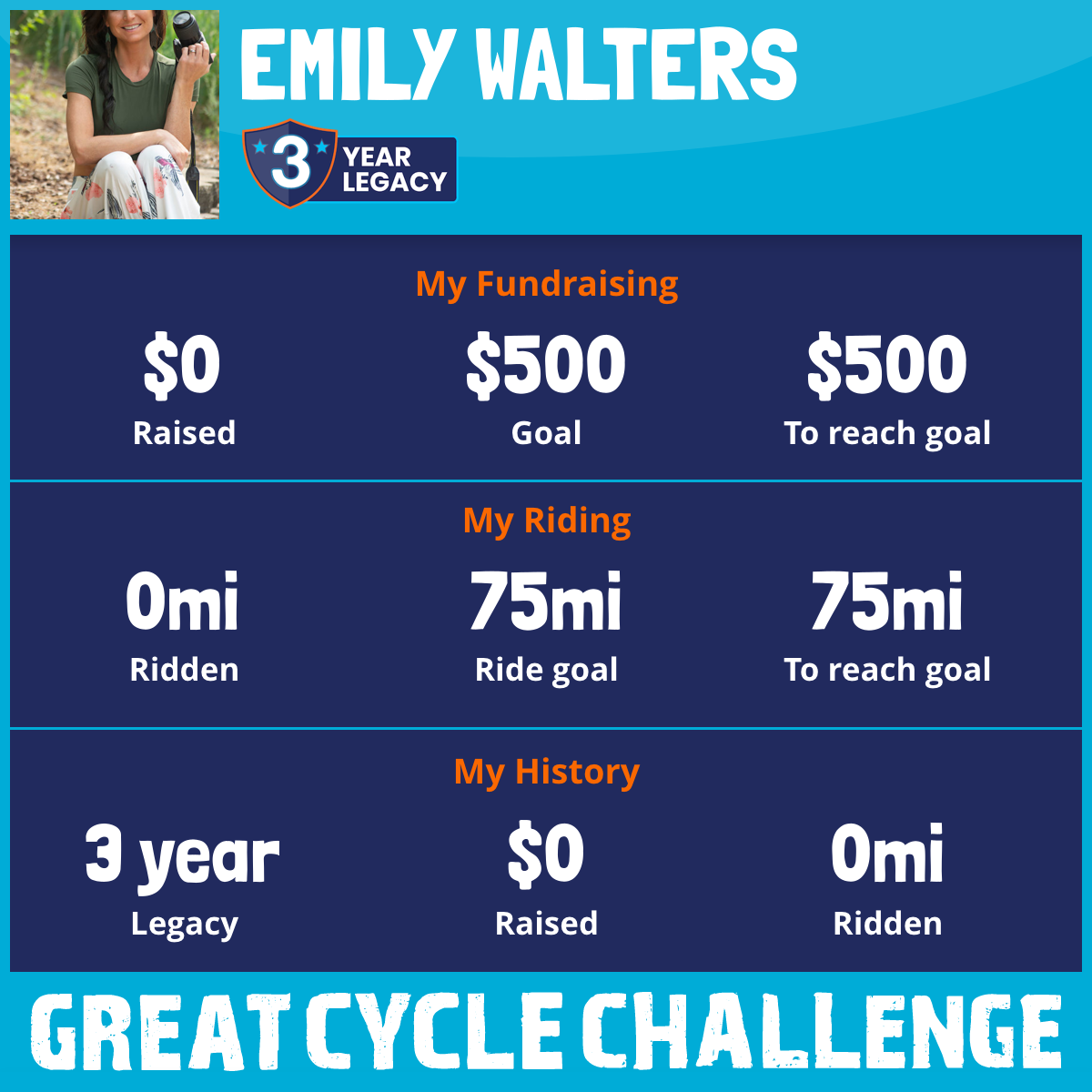 I am riding 75 mi for my grandfather, missy. Please sponsor me and support my challenge to fight kids' cancer and save little lives.