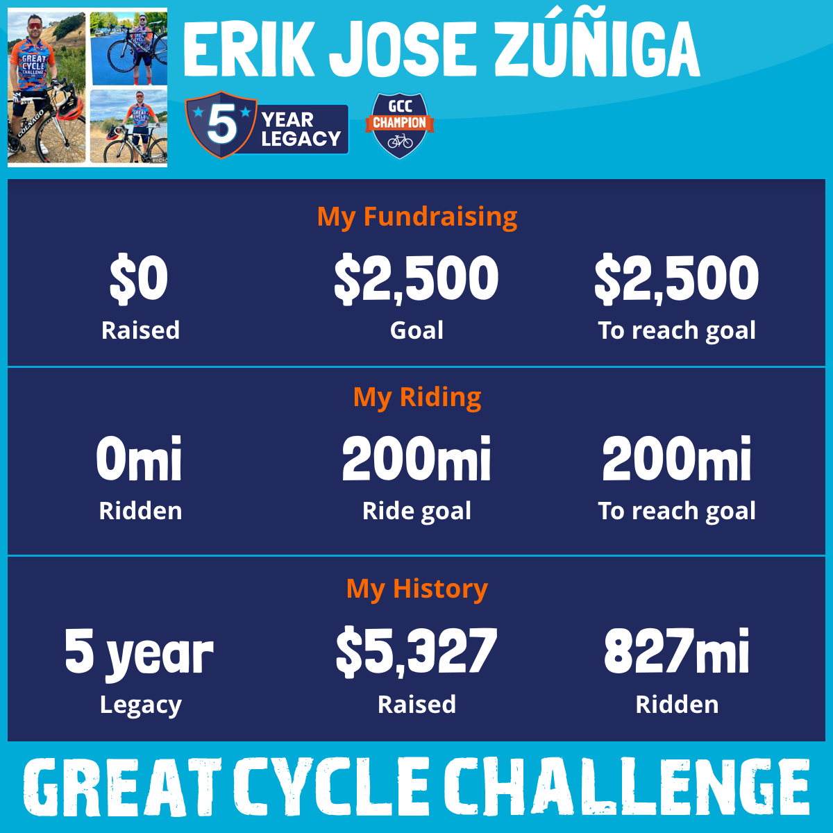 I am riding 100 mi for Jose Zuniga. Please sponsor me and support my challenge to fight kids' cancer and save little lives.