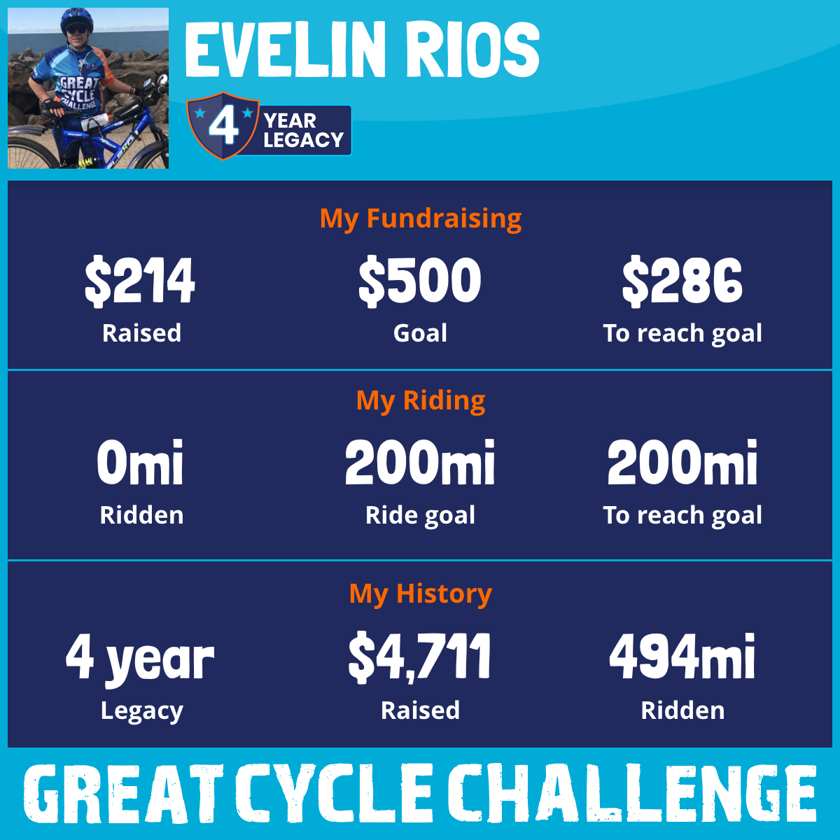 256 mi Ridden$2,507 Raised2025