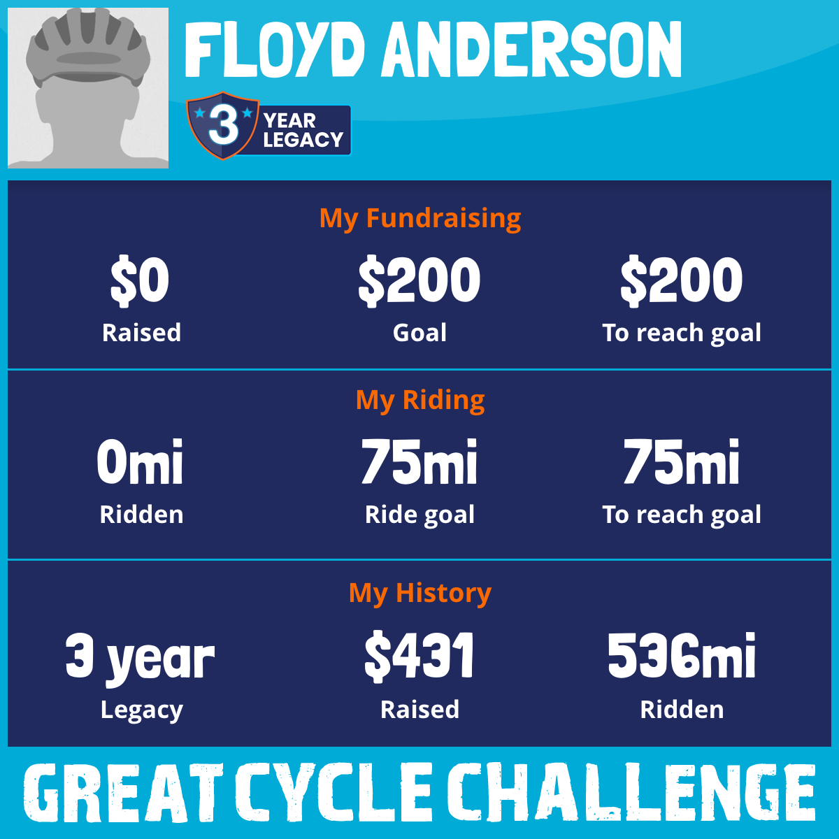 I've raised $0 My goal is $200 Donate Now