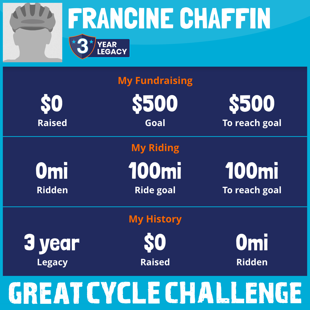 I am riding 100 mi in memory of Gloria Dines. Please sponsor me and support my challenge to fight kids' cancer and save little lives.