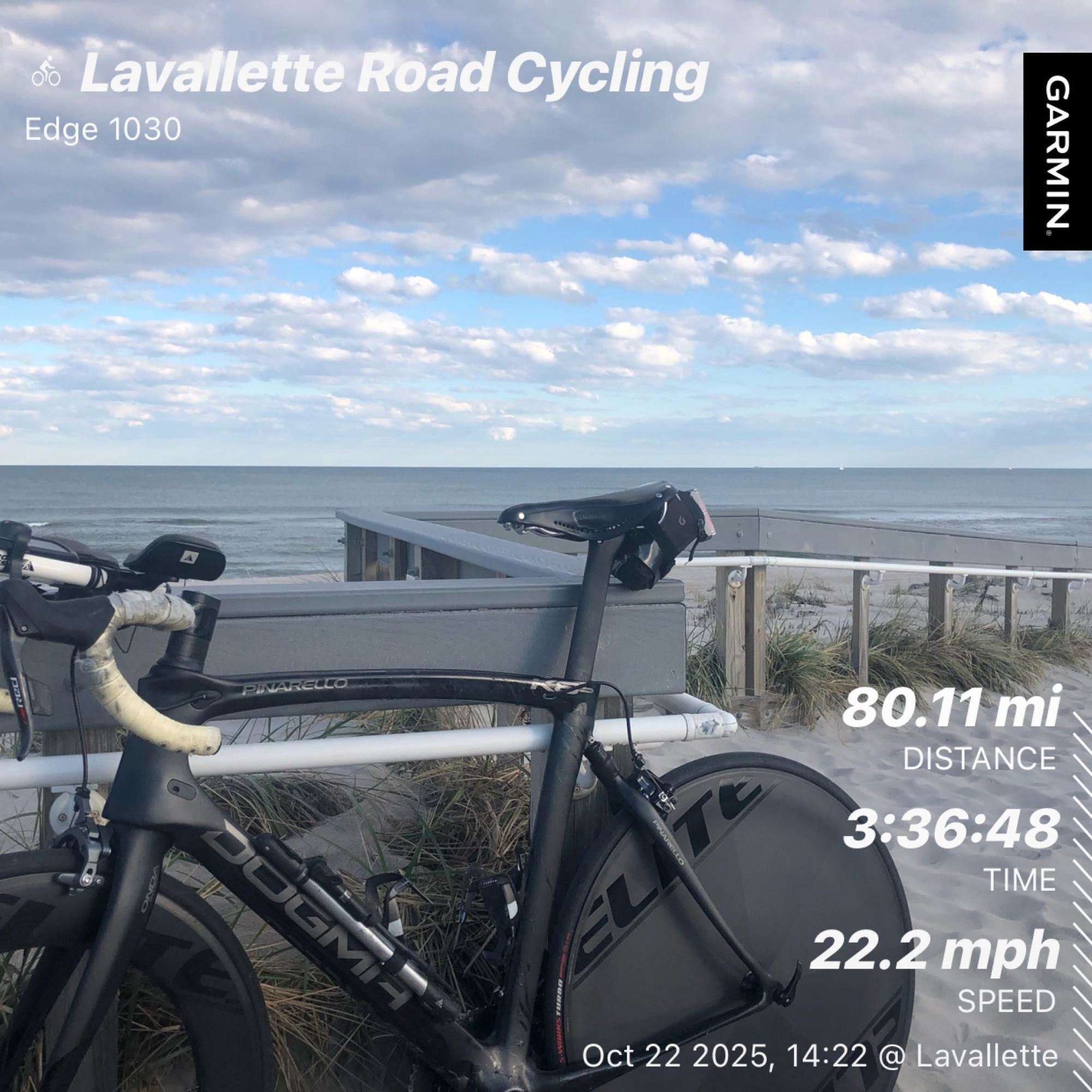 80.1 mi ride - K8S-TT-22.2mph fastest 100 km in months winds WSW 20+ mph gusts 30 mph - Wednesday, October 22, 2025