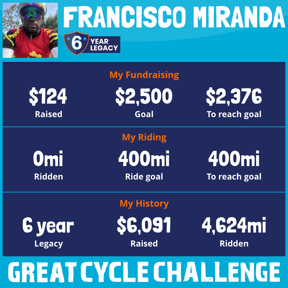 1,409 mi Ridden$2,373 Raised2023