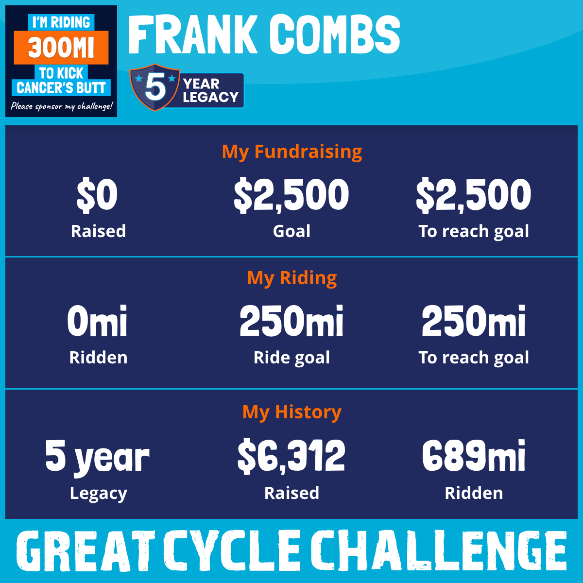 To All that will take a moment or two to Read this, Thank You!!!! My 5th year doing this wonderful Challenge to raise funds to help cure the rate of CANCER in CHILDREN. I did get a late start this year due to waiting for a release from my doctor after a surgery.