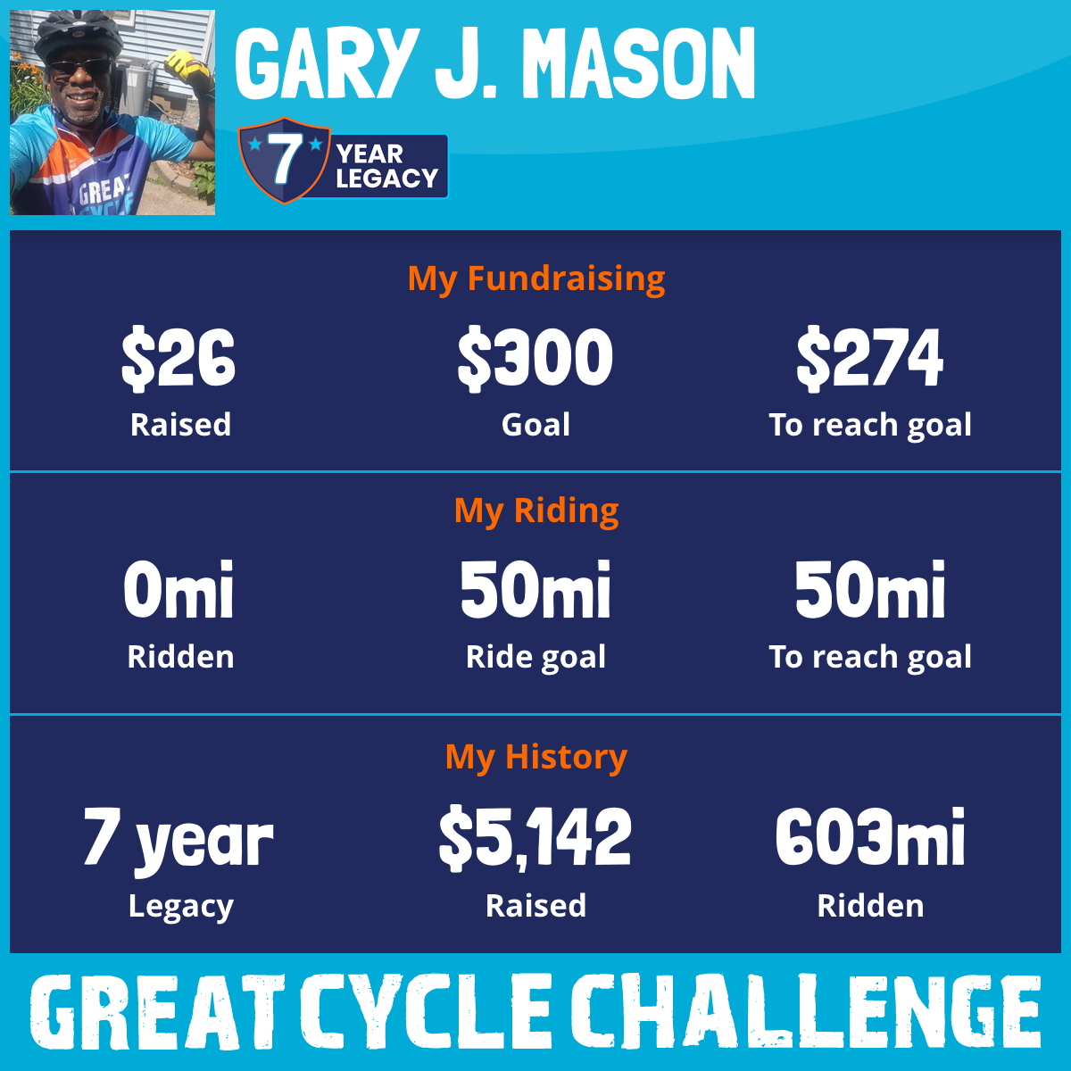 I am riding 50 mi for my wife, Chyrell. Please sponsor me and support my challenge to fight kids' cancer and save little lives.