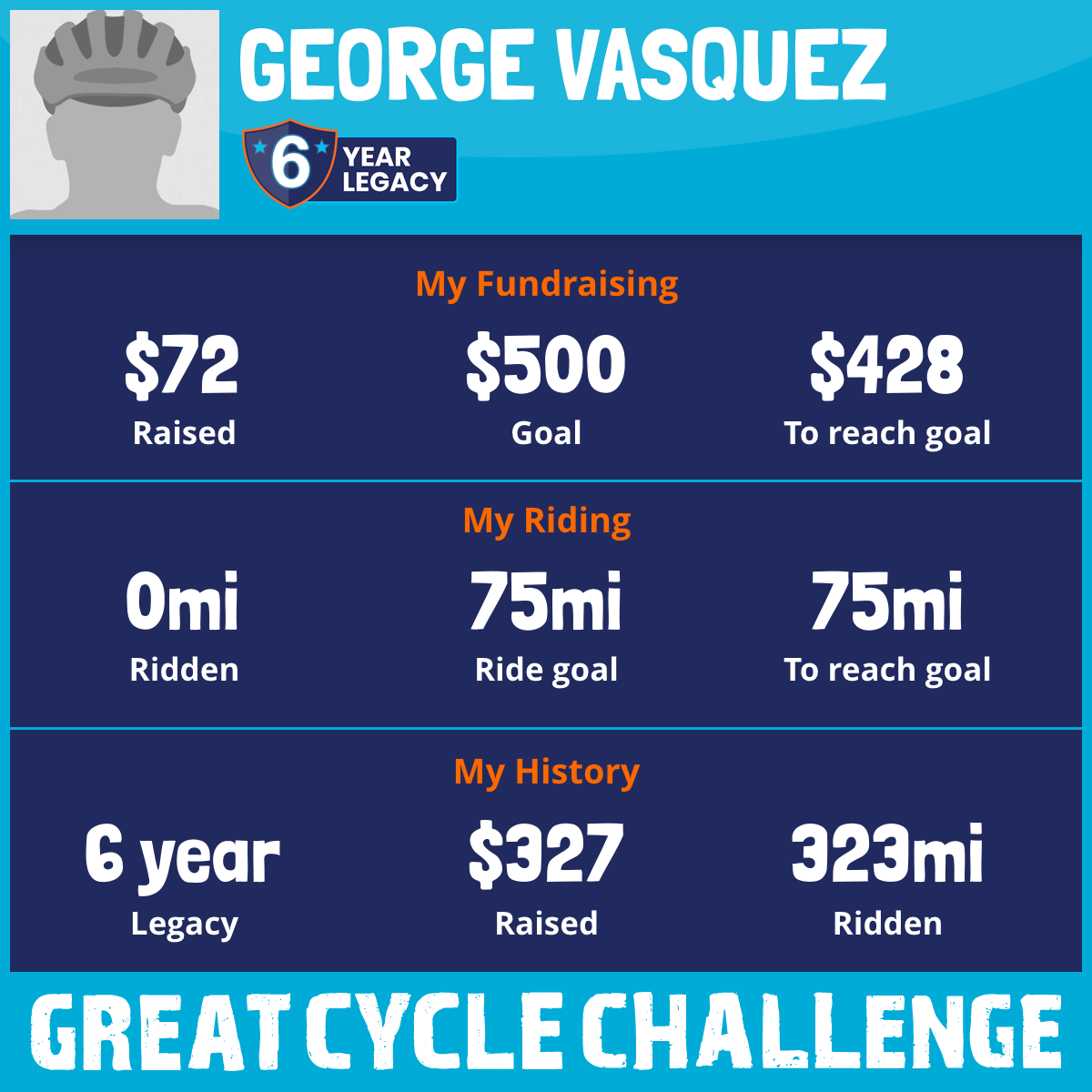 I am riding 75 mi in memory of Nellie Vasquez & Paula Gonzales. Please sponsor me and support my challenge to fight kids' cancer and save little lives.