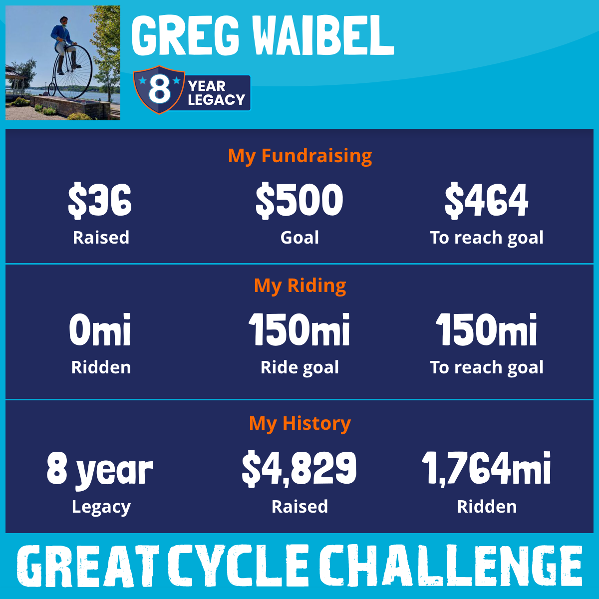 I am riding 150 mi for Laurie, Mike & Steve. Please sponsor me and support my challenge to fight kids' cancer and save little lives.