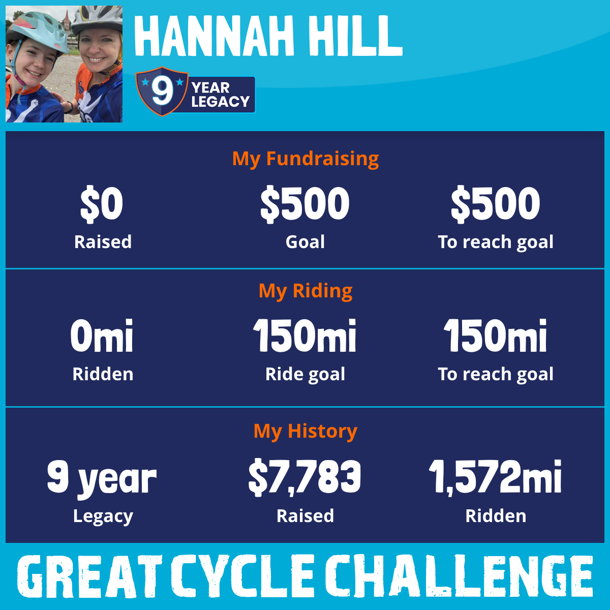 This September (Childhood Cancer Awareness Month), I am once again taking part in the Great Cycle Challenge to help fight kids' cancer. I will ride in honor and in memory of my sister, McKensie, who lost her battle against DIPG in 2007. This year, my daughter Audrey will be joining me for the challenge.