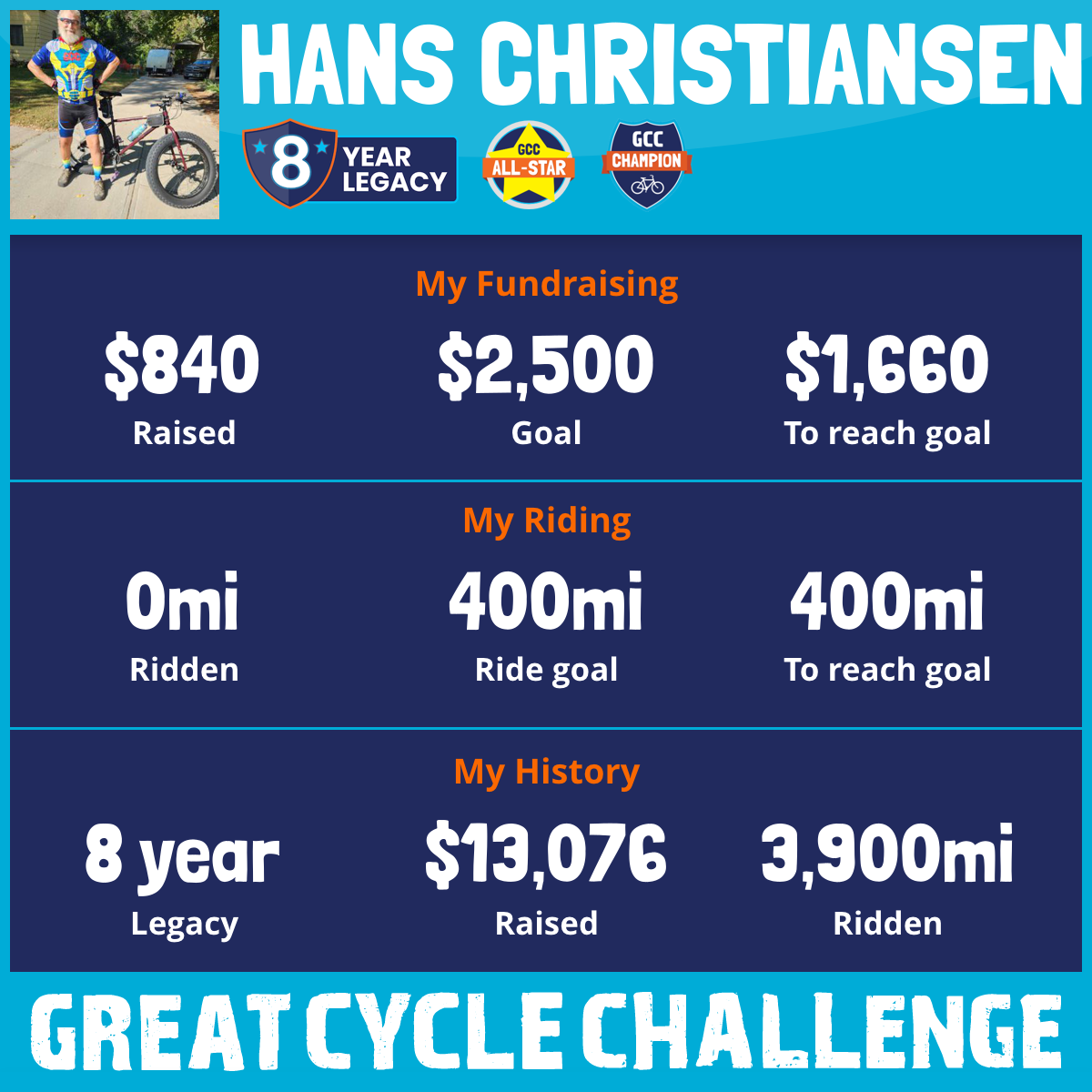 837 mi Ridden$2,956 Raised2025