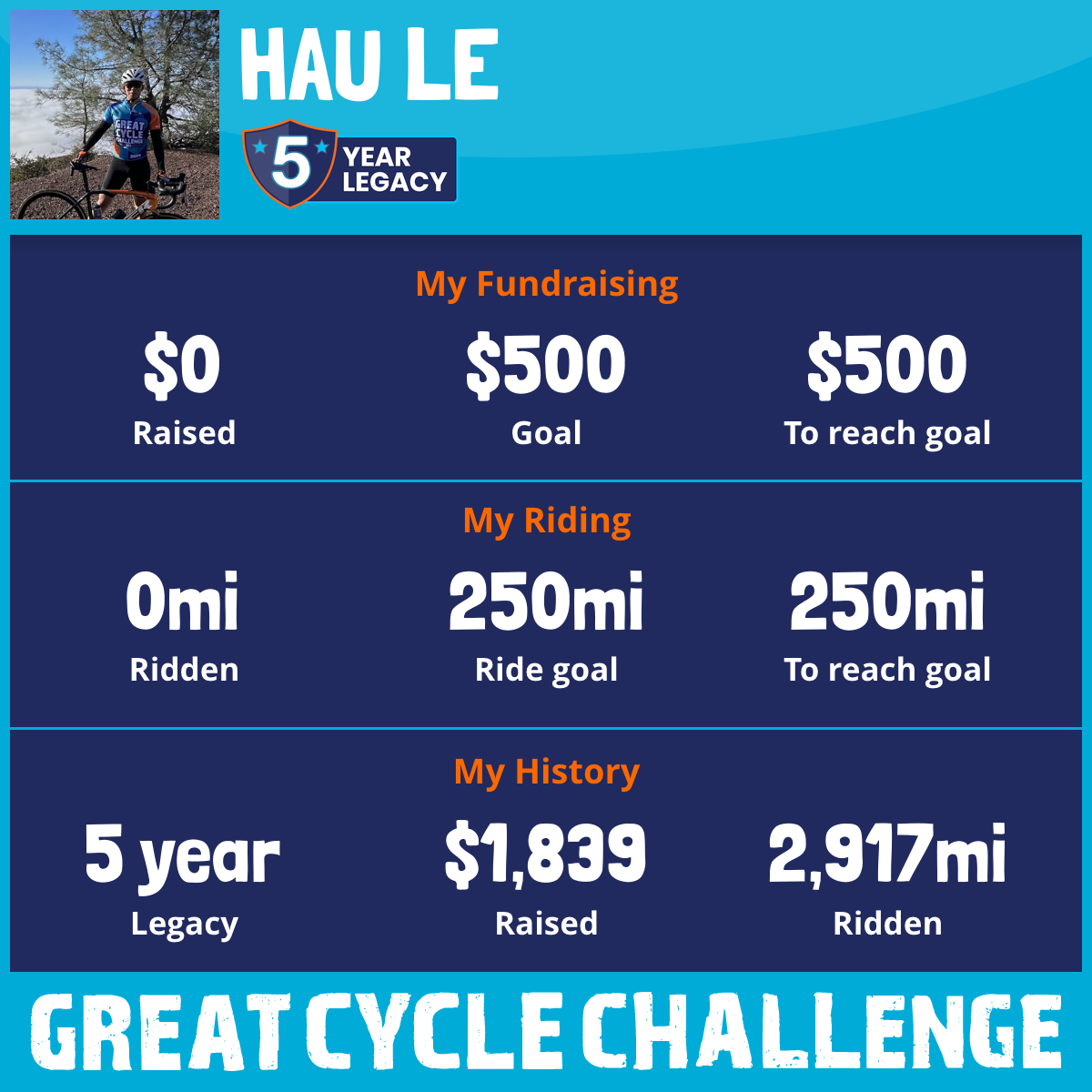 1,074 mi Ridden$937 Raised2021
