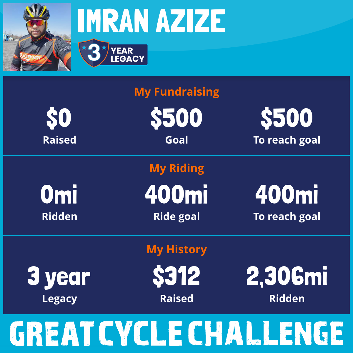 I am riding 400 mi for Bibi Harjoon. Please sponsor me and support my challenge to fight kids' cancer and save little lives.