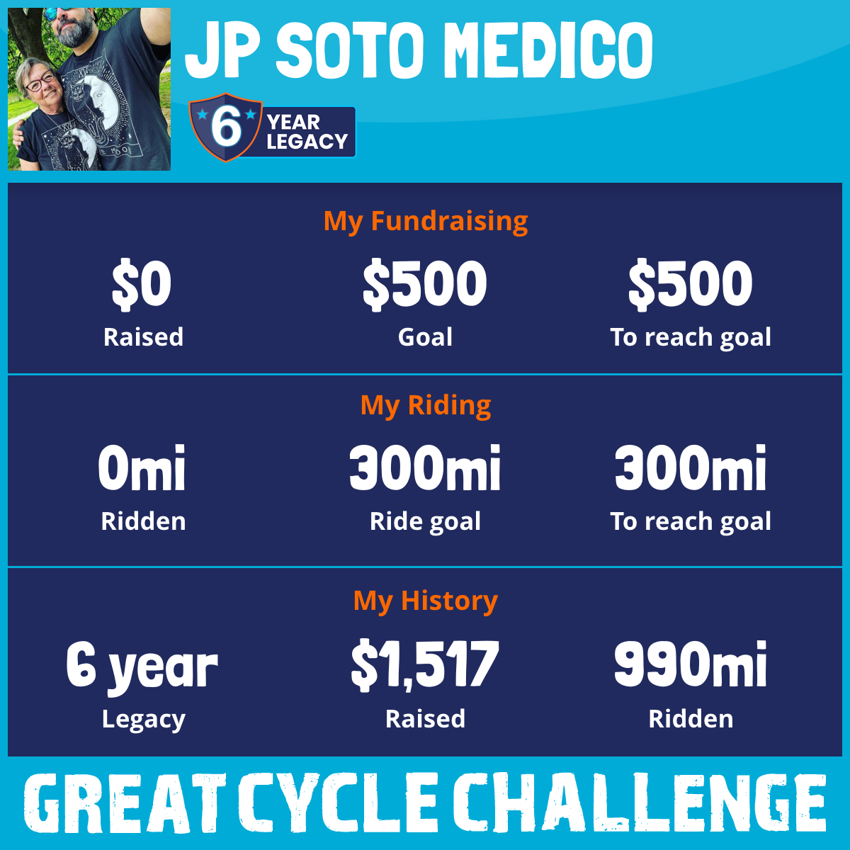 It's been a rough year, I lost mom, I celebrated a loved one who won the battle against Cancer and now I pray for a friend who is currently fighting. This is my fifth year riding and raising money for greatcyclechallenge.com and their efforts helping kids with Cancer. Please donate what you can to this campaign, ride with me around Baltimore, or bring me a Gatorade to Paterson Park. Everything helps, but mostly your donations to this cause.