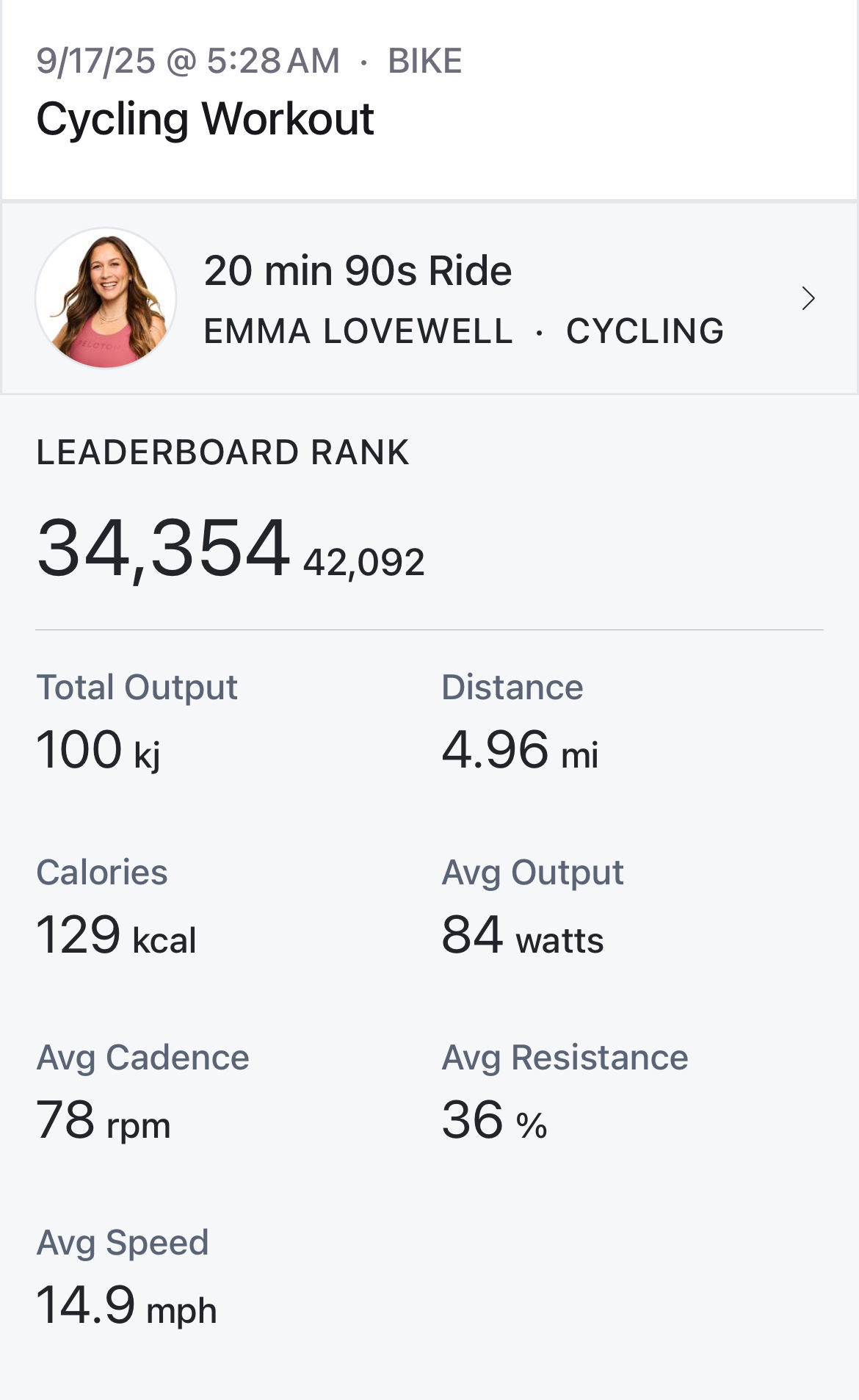 5.0 mi ride - 20 min Peloton 90s Ride - Wednesday, September 17, 2025