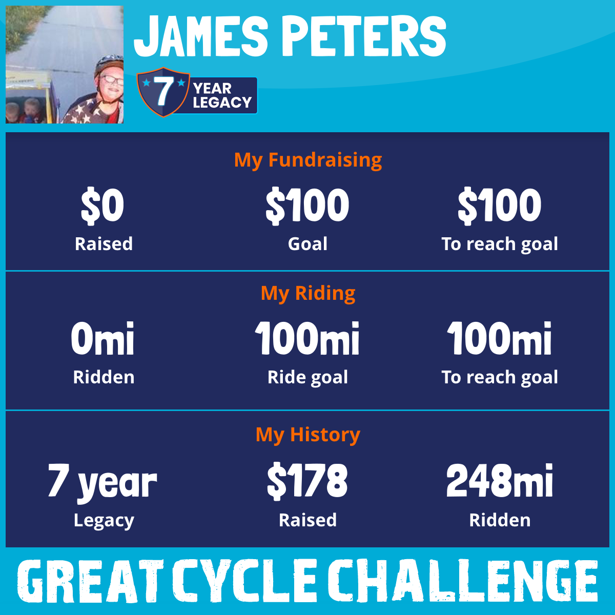 I am riding 200 mi for Friends and family that are living or have lived with cancer.. Please sponsor me and support my challenge to fight kids' cancer and save little lives.