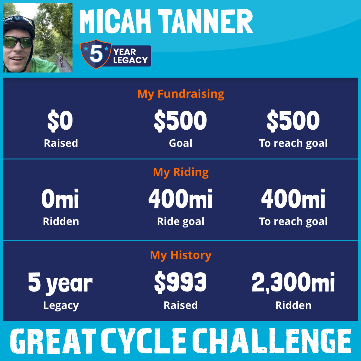 I am riding 400 mi in memory of Grandpa Tanner. Please sponsor me and support my challenge to fight kids' cancer and save little lives.