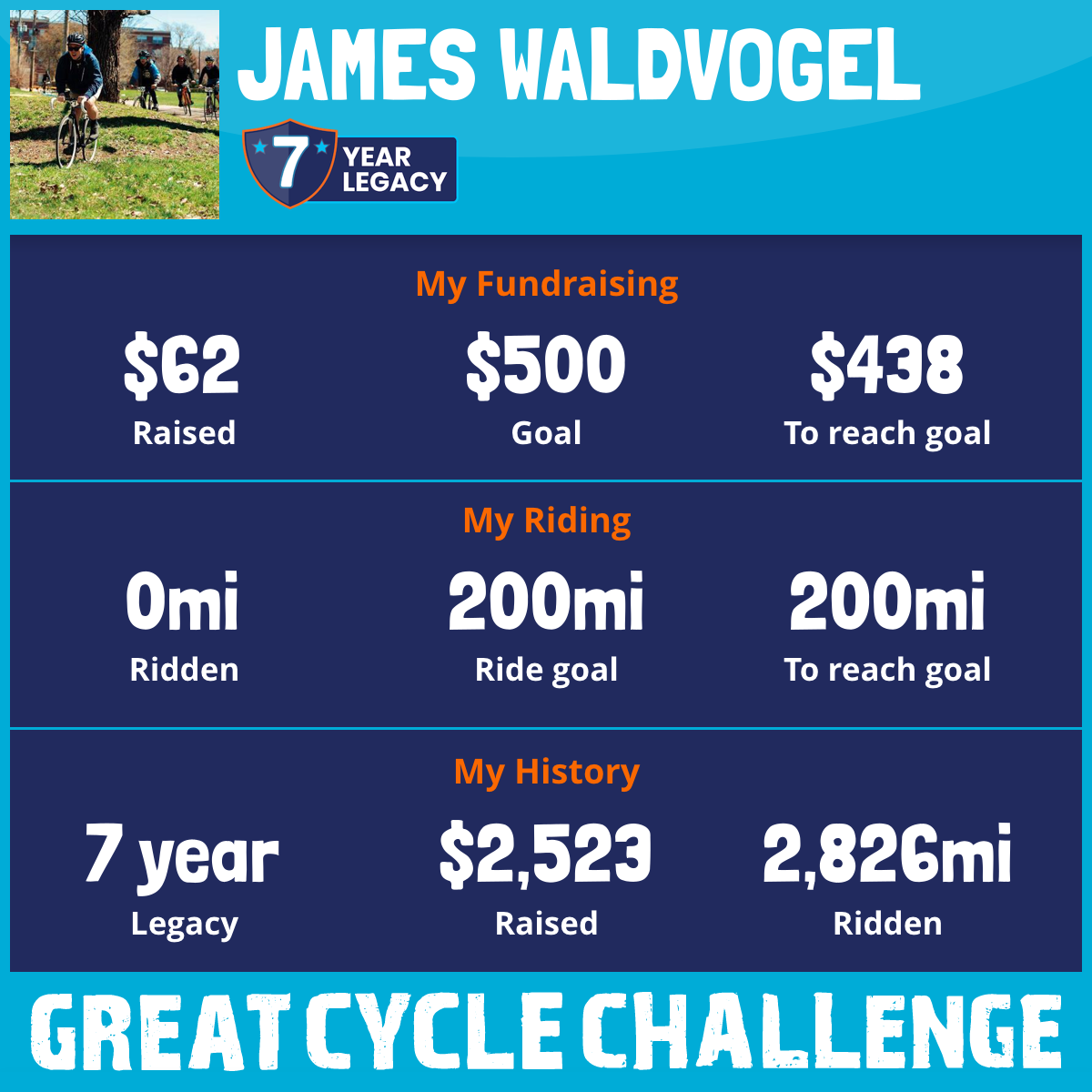 1,303 mi Ridden$518 Raised2019