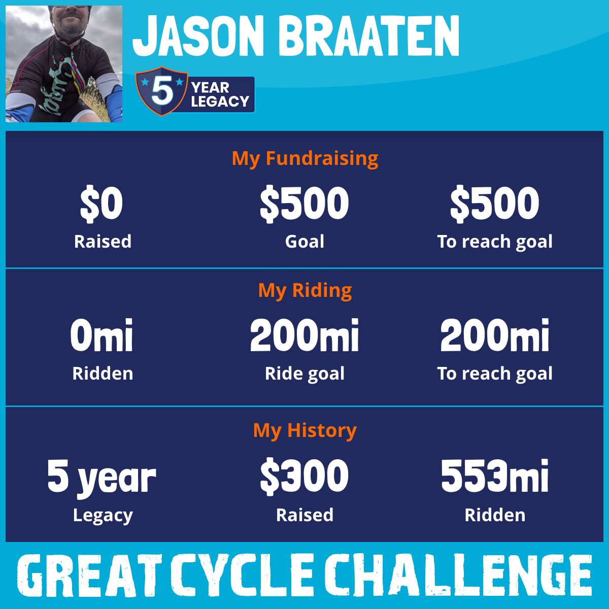 I am riding 200 mi in memory of DuWayne Braaten. Please sponsor me and support my challenge to fight kids' cancer and save little lives.