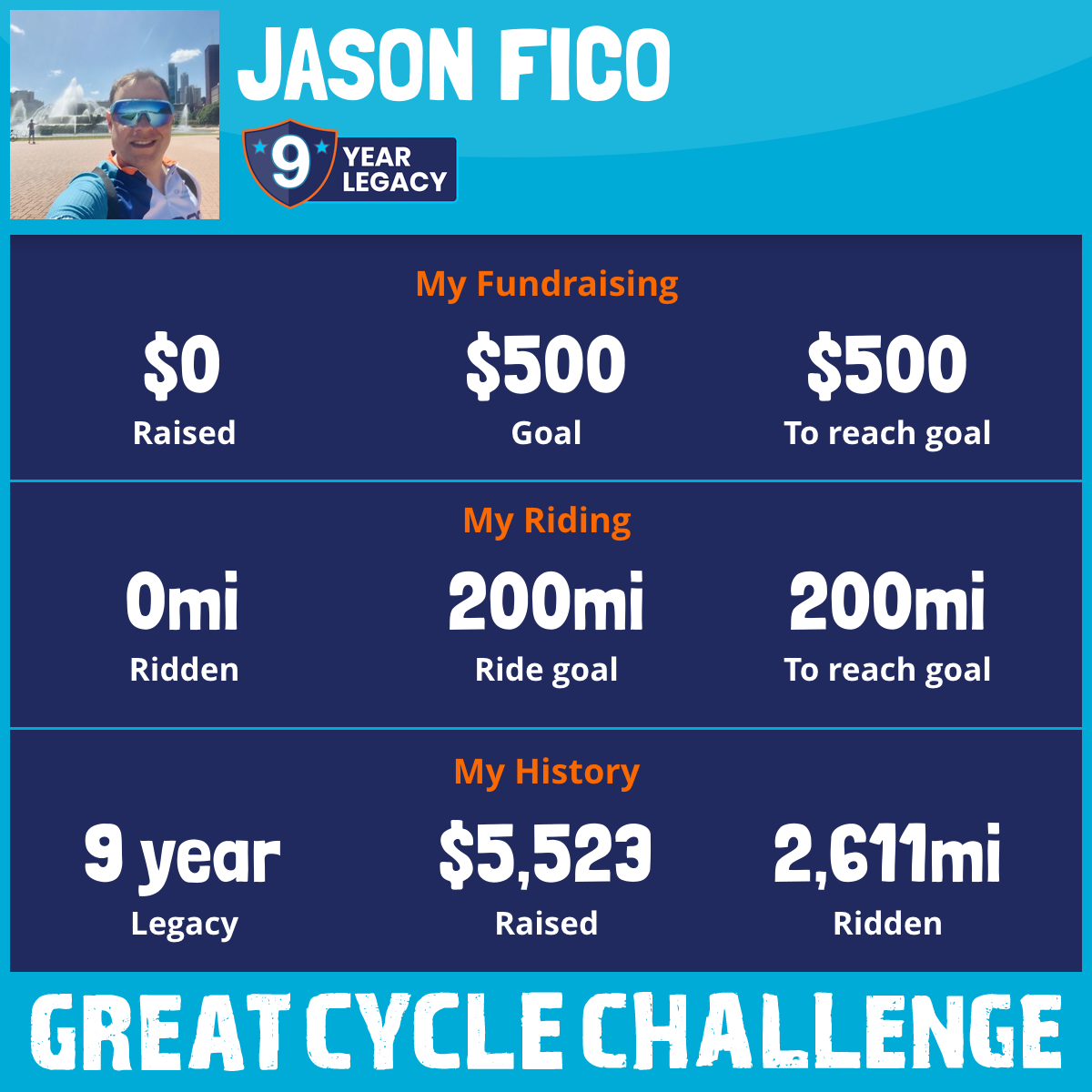 I am riding 200 mi in memory of my brother, DUSTIN FICO. Please sponsor me and support my challenge to fight kids' cancer and save little lives.
