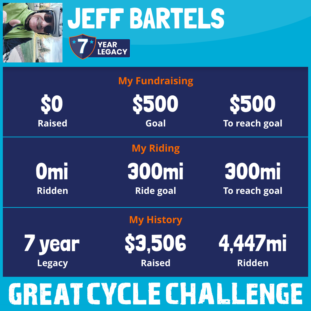 I am riding 300 mi in memory of my brother-in-law, Russ McCormick. Please sponsor me and support my challenge to fight kids' cancer and save little lives.