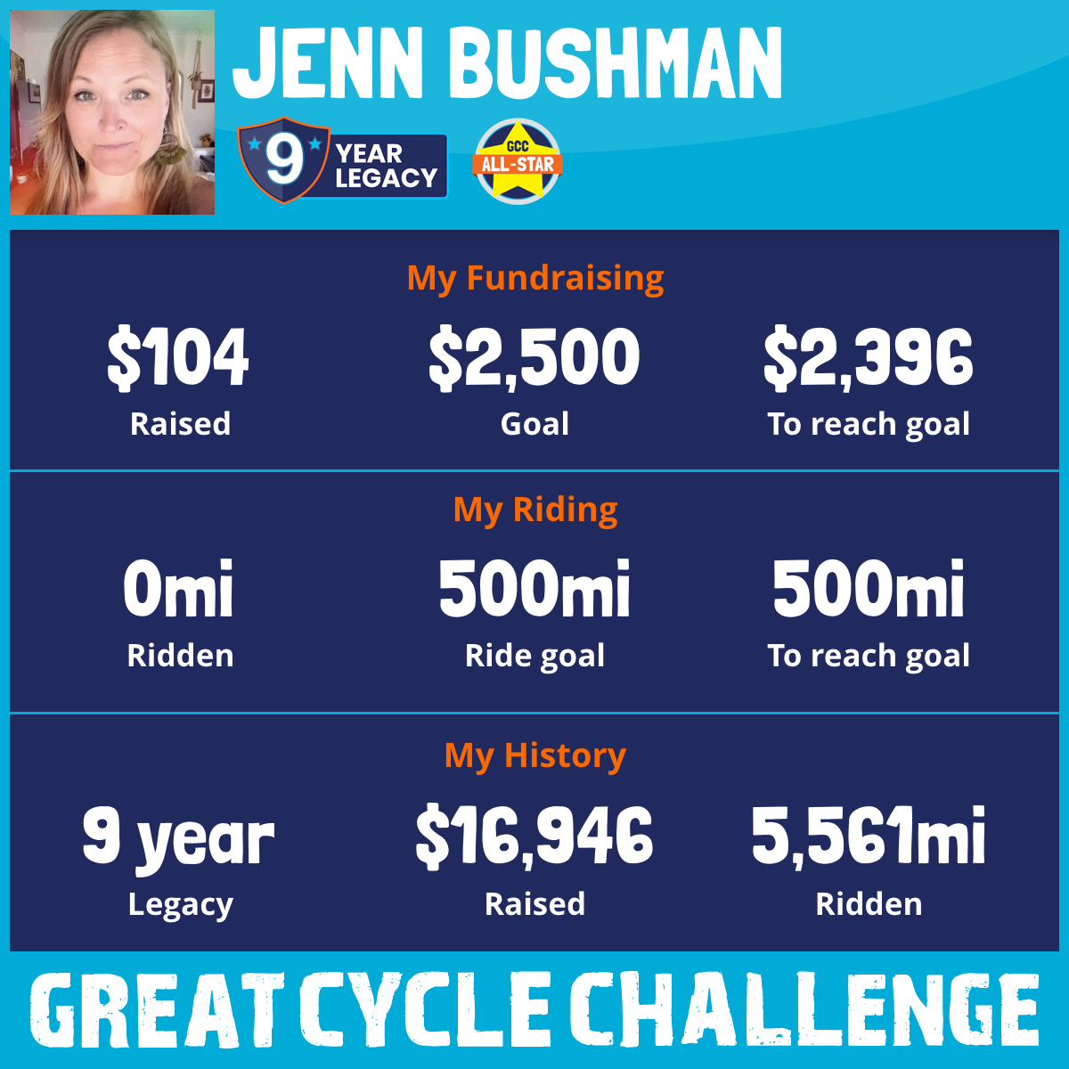 If I hit my fundraising goal of $2500, I'll post my last ride wearing my GCC Allstar Jersey! This challenge will be grueling, but it's nothing compared to what these brave kids and their families face every day of their lives as they battle cancer.