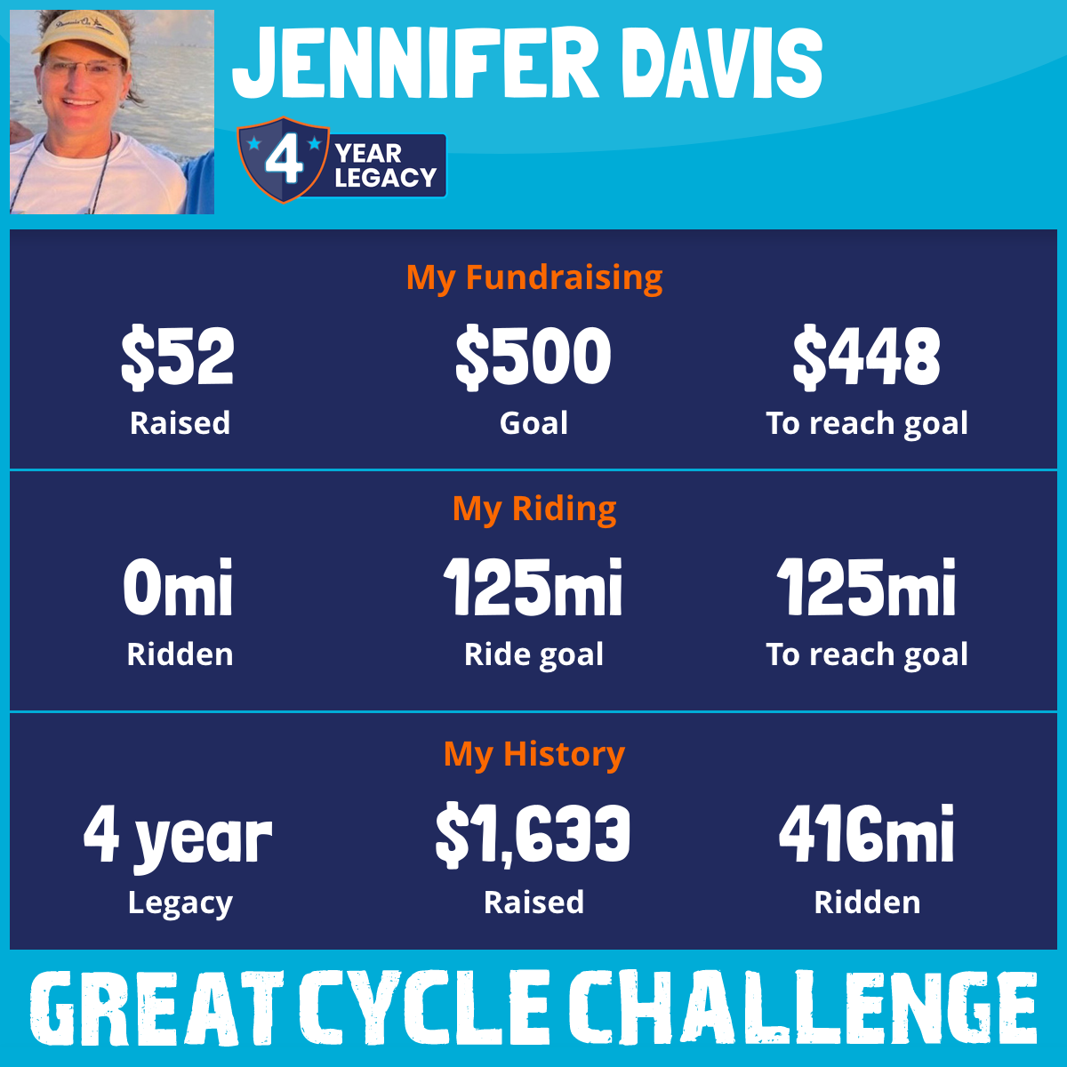 I am riding 125 mi to fight kids' cancer and save little lives. Please sponsor me to support my challenge!