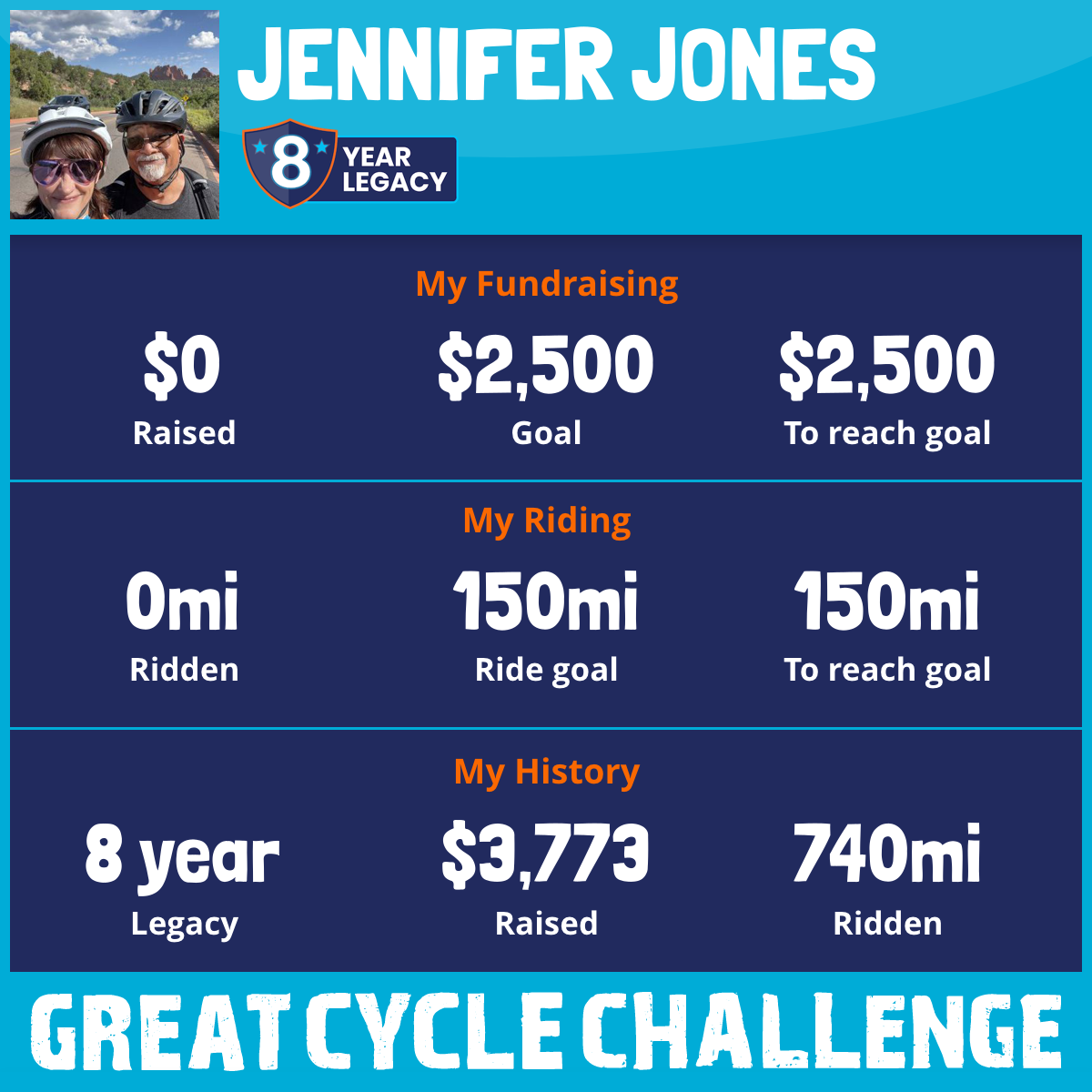 I participate in the Great Cycle Challenge because cancer has touched the lives of people I love. Seeing firsthand how important research, treatment, and care are—not just for patients, but for their families too—has shown me why this cause matters so much. Every mile I ride is my way of helping to fund the research that gives kids and families more hope, more options, and more time together. This challenge is personal to me, and I’m grateful for the chance to ride, raise awareness, and support the fight against childhood cancer.