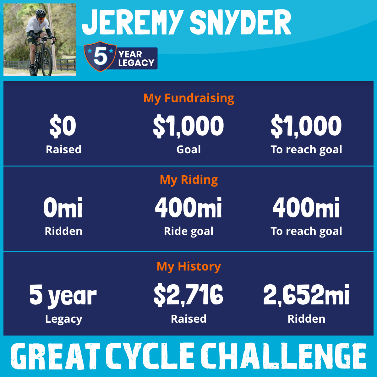 Bob is a caring husband, father of three, and avid cyclist. He participated in many fundraising cycling events for others. Little did he know that that on August 4th, 2023 that he would be diagnosed with terminal brain cancer (three tumors which are all Glioblastoma Multiforme). Unfortunately, Bob lost his battle and passed on September 8th, 2023. We love and miss you! While his short term memory was immediately affected, I, began the role as the primary caretaker with my mom Jodi. My dad and I spent many hours talking late into the night, eating all our meals together, walks through the neighborhood and on the beach, watching murder mystery tv shows, and just comforting each other. Unfortunately the aggressiveness of the cancer could not be stopped and my dad passed away last year on September 8th. He is loved and missed everyday. He also was an avid 10k mile year cyclist and still inspires me to ride each day. Dad, I love you beyond any earthly words that can be spoken. Thank you for raising me to love others, and most of all for always being my best friend. May these donations in your name, bless and help young lives so they may have a fighting chance at a long and fruitful life. Till we meet again...