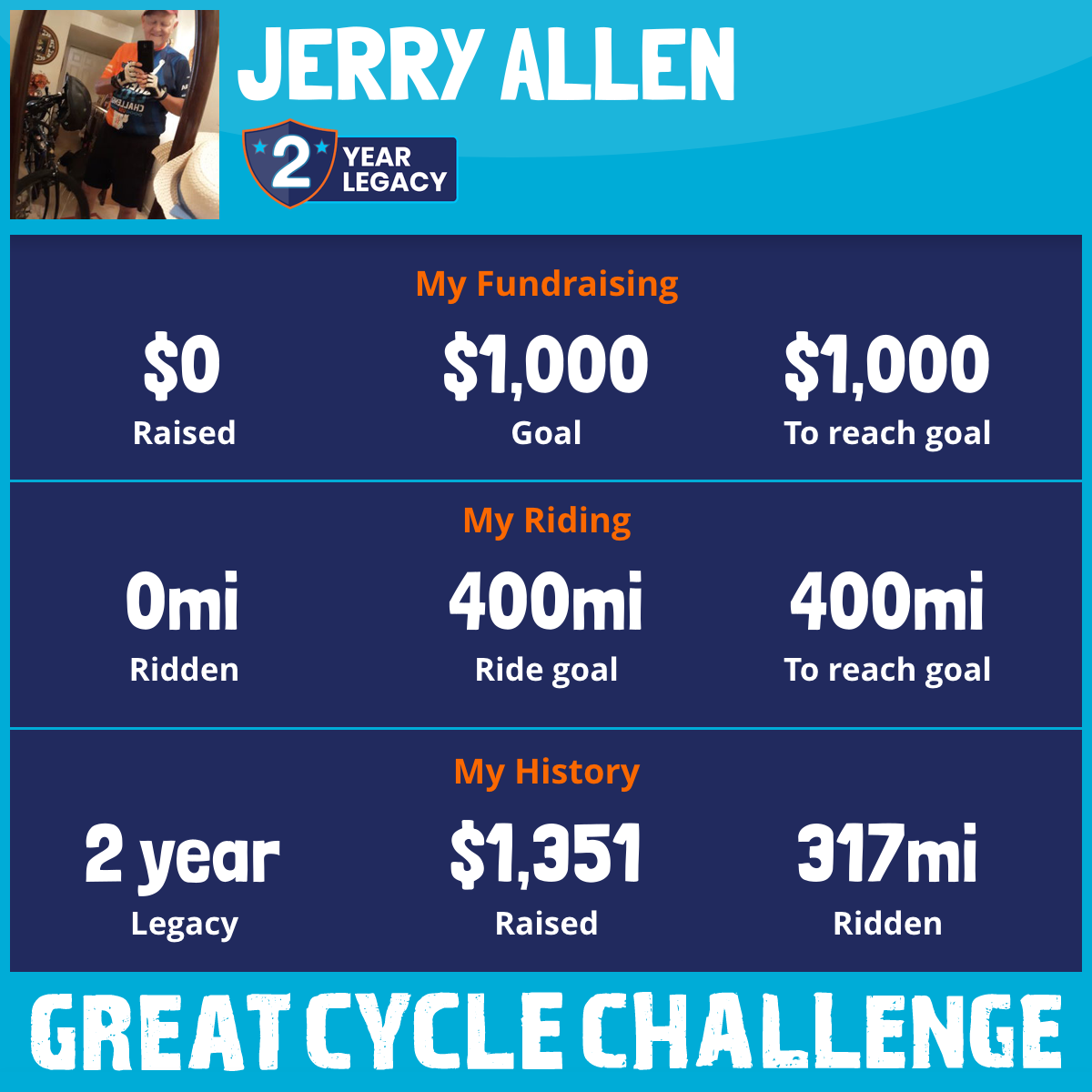 317 mi Ridden$1,351 Raised2024