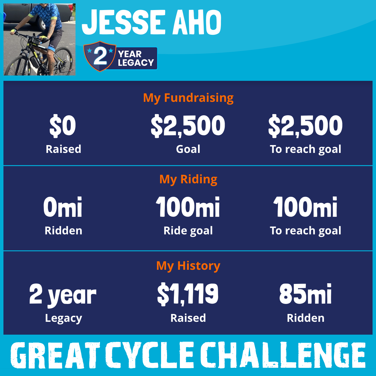 85 mi Ridden$1,119 Raised2024