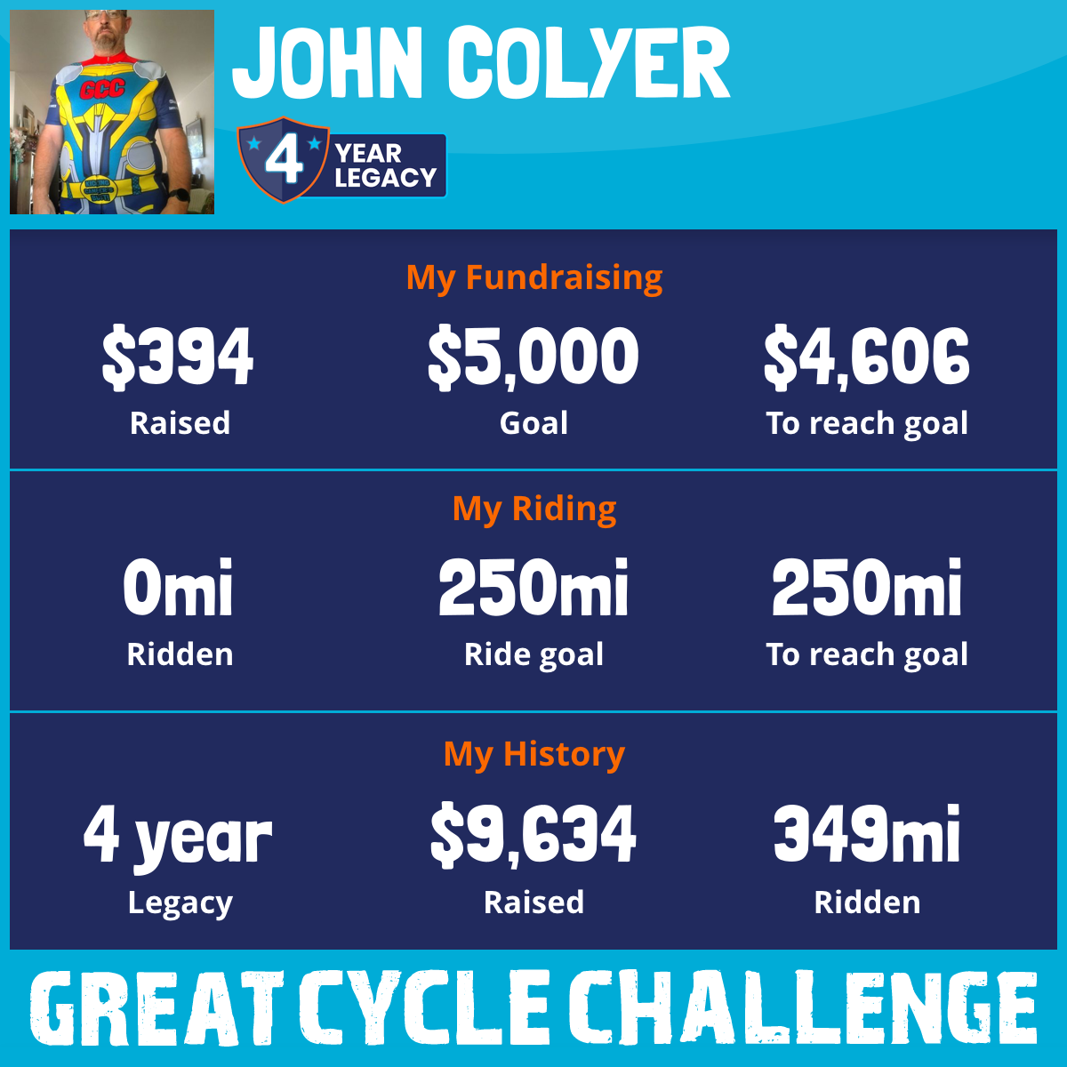 Here we go! Riding my fourth year in the Great Cycle Challenge, and kids cancer is even closer to home...