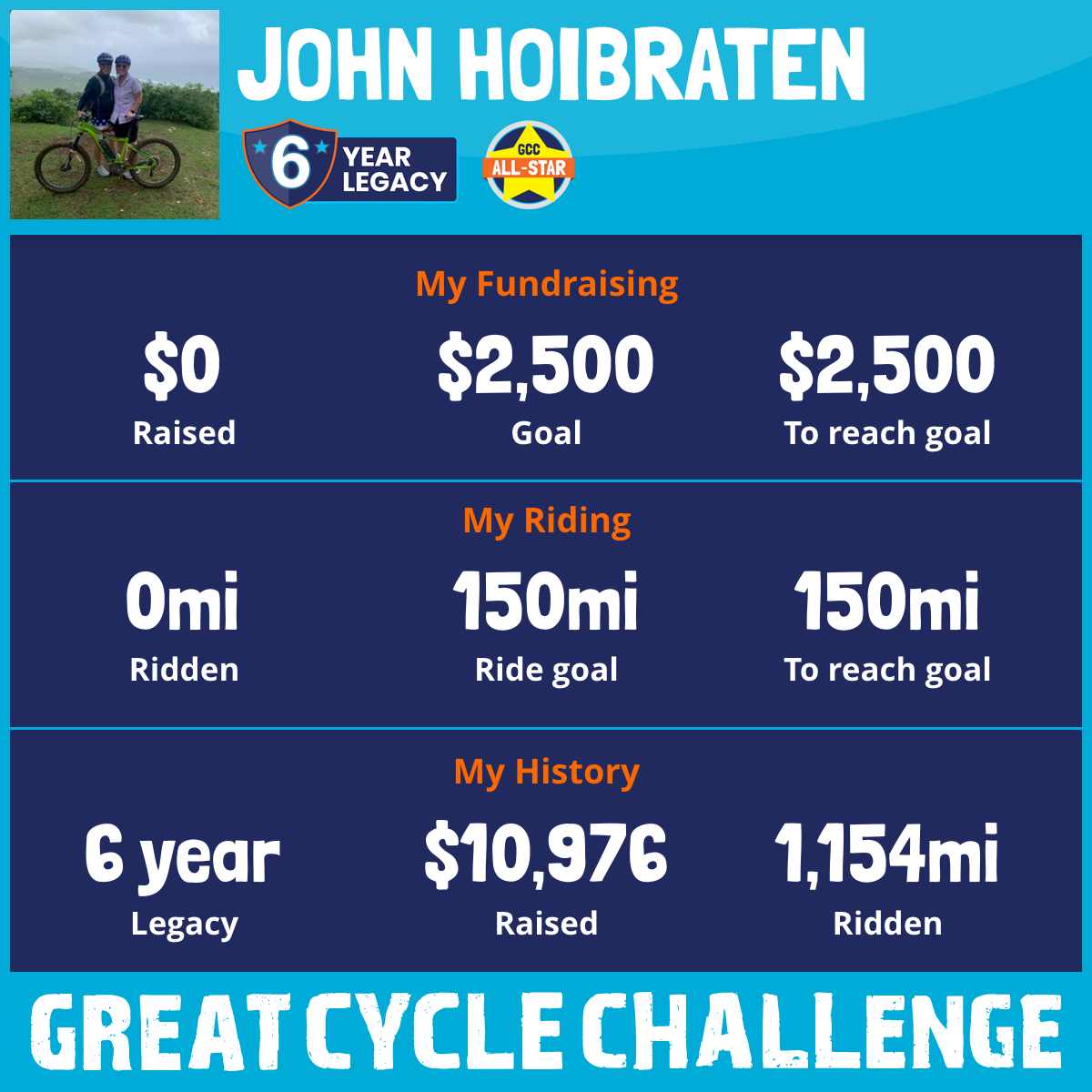 This September, I am taking part in the Great Cycle Challenge to fight kids' cancer! Last year with your help, I was able to raise $2,630 towards this great charity and this year I want to see if we can push to $3,000!!!!