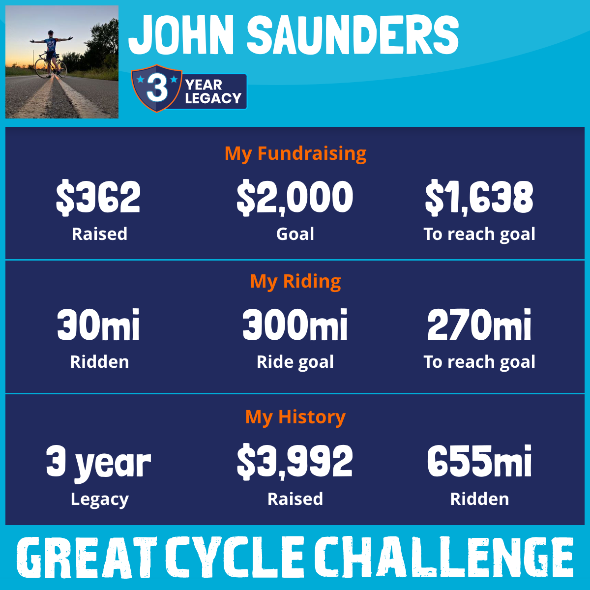 301 mi Ridden$1,086 Raised2025
