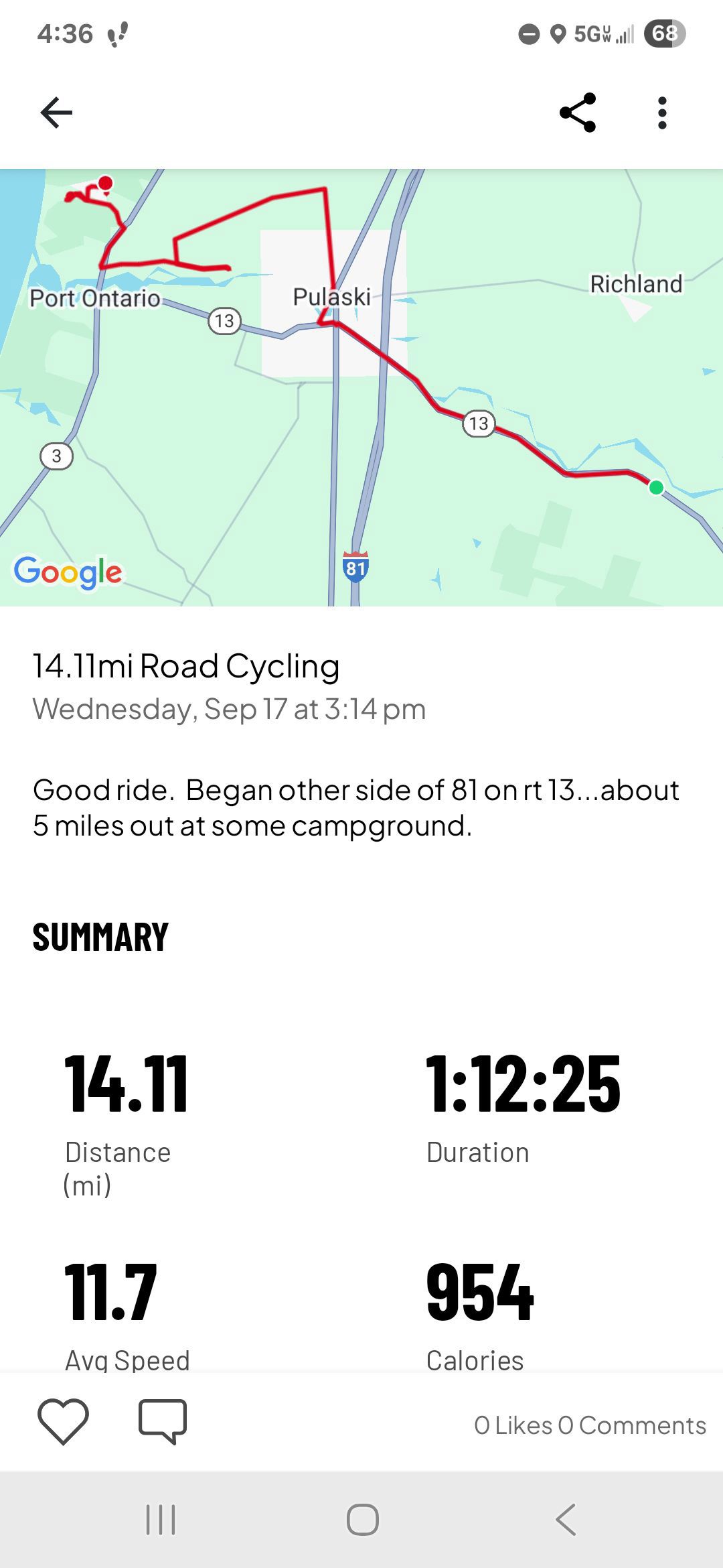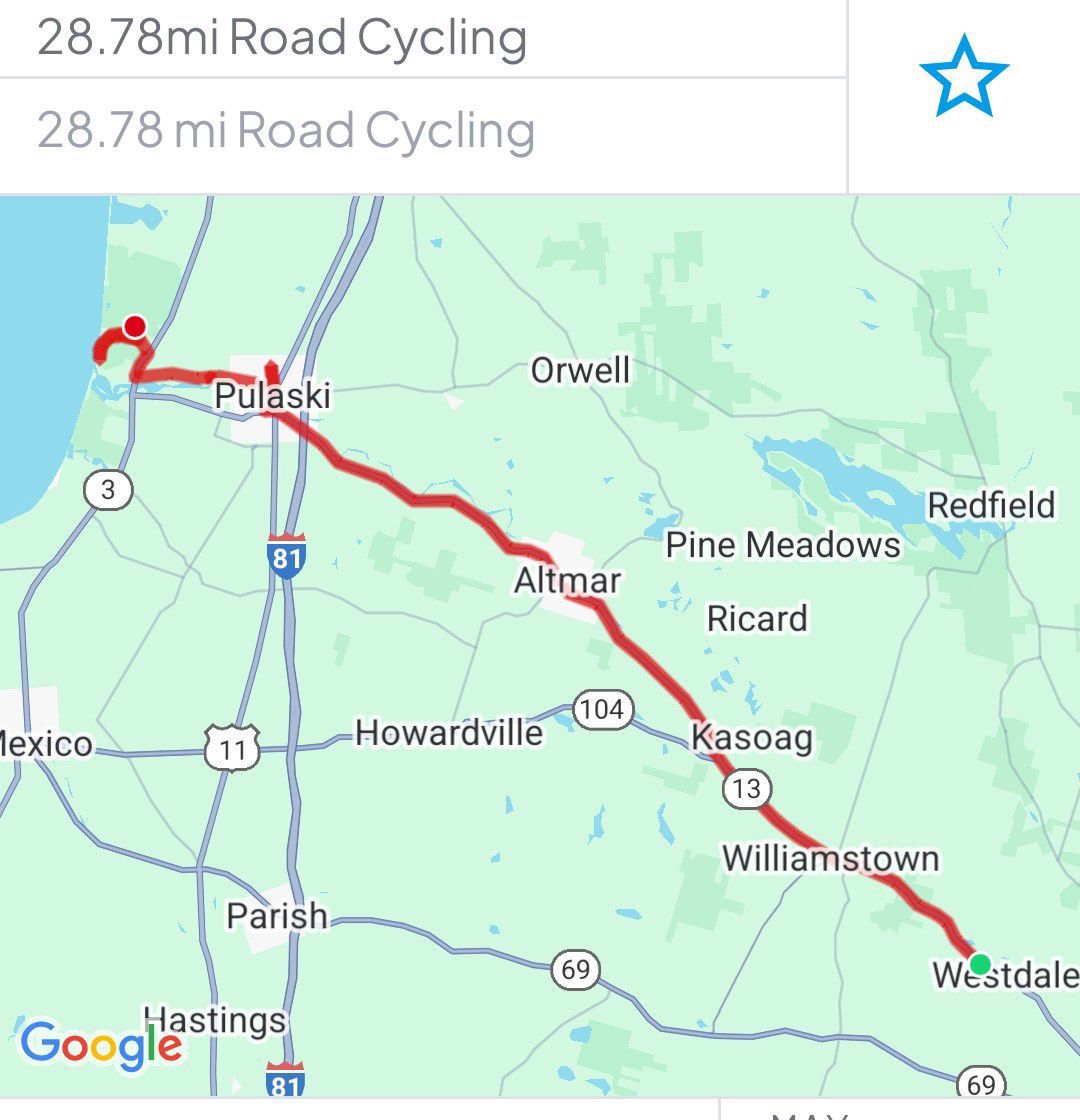 28.8 mi ride - Camden Florence Albion Williamstown Pulaski + - Friday, September 19, 2025