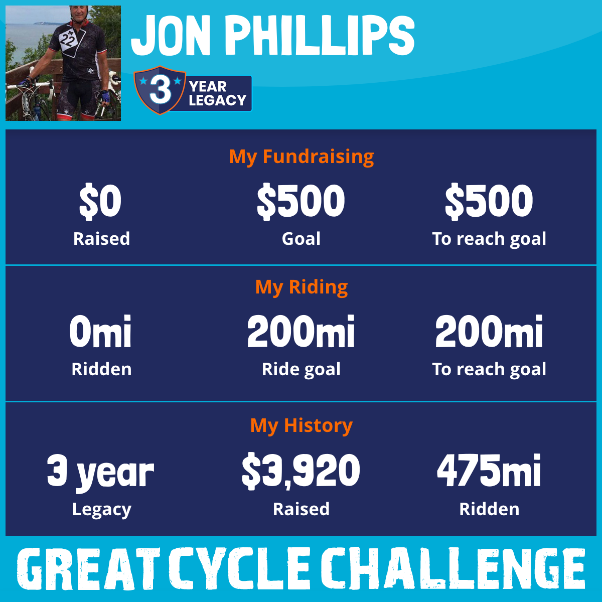 I am riding 200 mi for my brother, Mark Phillips. Please sponsor me and support my challenge to fight kids' cancer and save little lives.