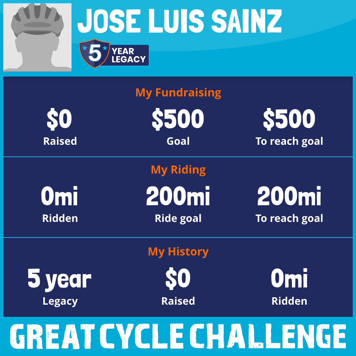 I am riding 200 mi in memory of ENRIQUE OROZCO SAINZ. Please sponsor me and support my challenge to fight kids' cancer and save little lives.