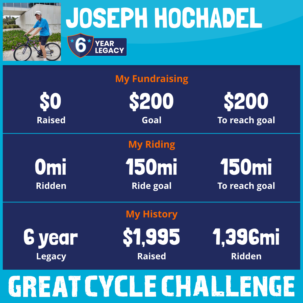 Please support my challenge now to end childhood cancer and save little lives. To make a donation, view my fundraising page: www.greatcyclechallenge.com/Riders/JosephHochadel