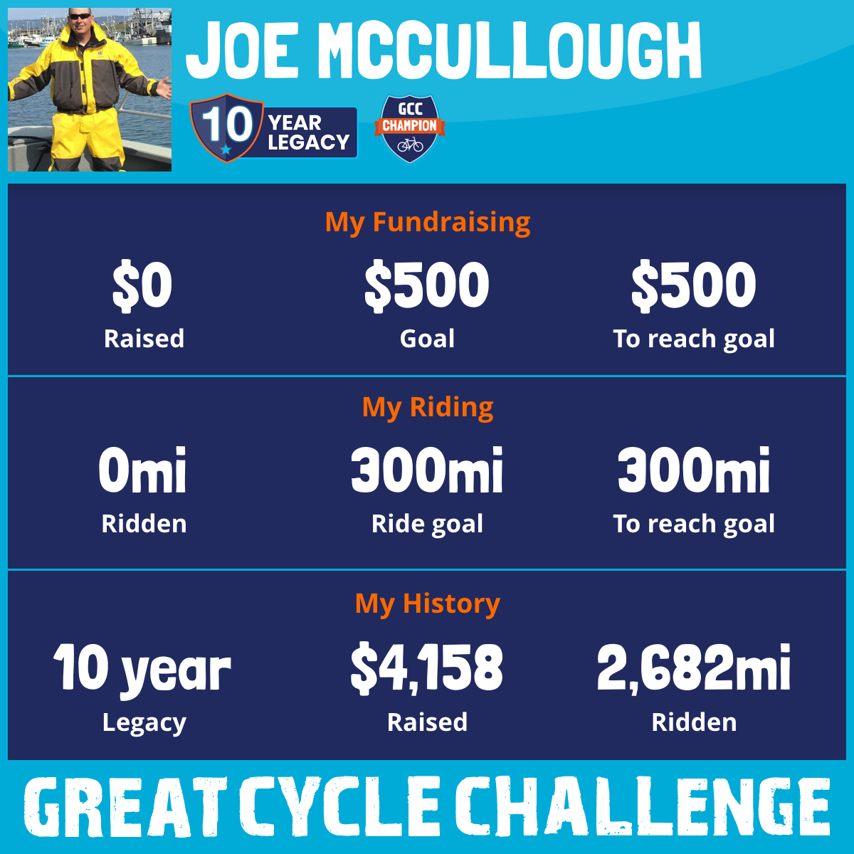 I am riding 300 mi in memory of my brother, Jon McCullough. Please sponsor me and support my challenge to fight kids' cancer and save little lives.