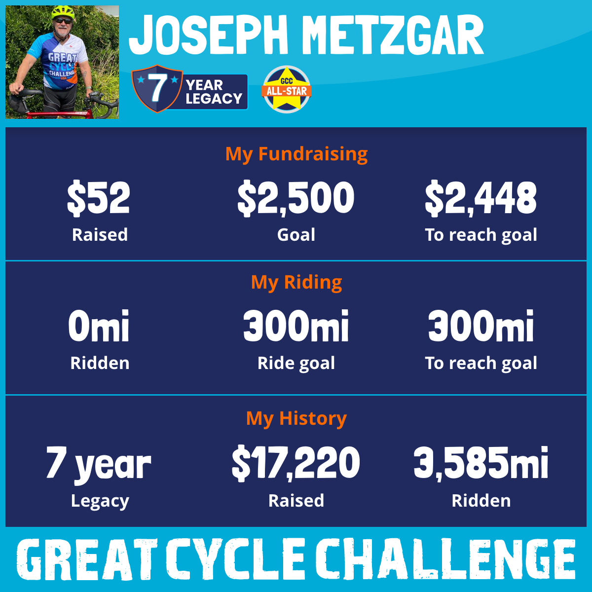I am doing this ride in tribute to my mother, Erika Metzgar, who succumbed to cancer 10 years ago. She was a giver who would have loved this.