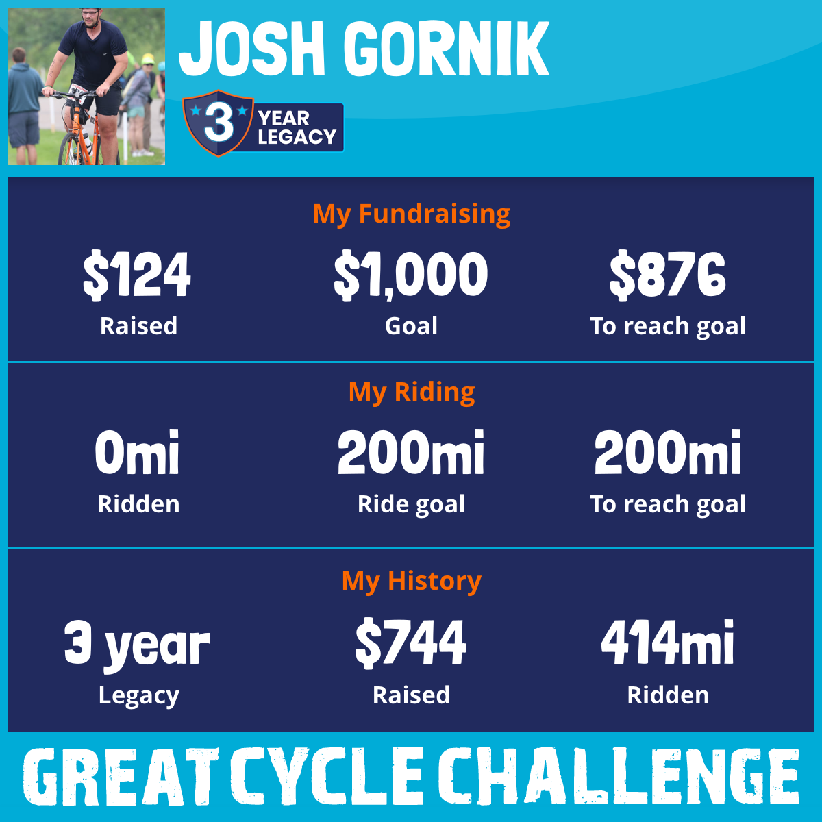 This September, I am taking part in my 3rd the Great Cycle Challenge to fight kids' cancer!