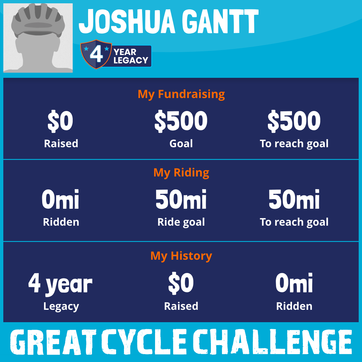 I've raised $0 My goal is $500 Donate Now
