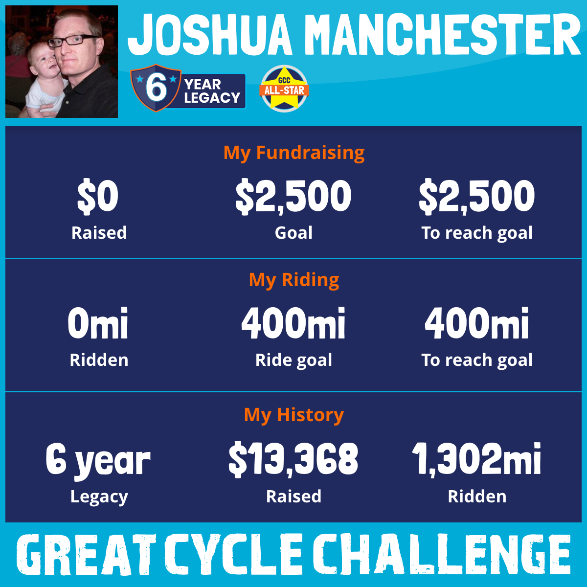 I am riding 400 mi in memory of Omar Manchester. Please sponsor me and support my challenge to fight kids' cancer and save little lives.