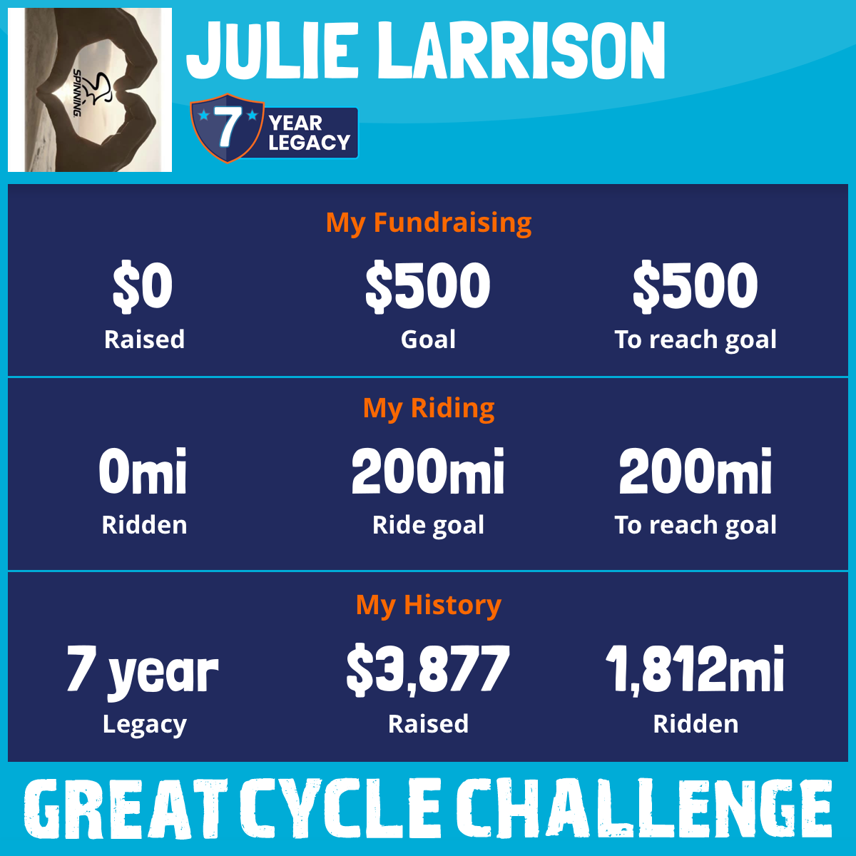 Our son Jesse is a survivor, and with this fantastic Great Cycle Challenge, I will ride miles in August to help kids fight cancer. To my 1&only Sonshine
