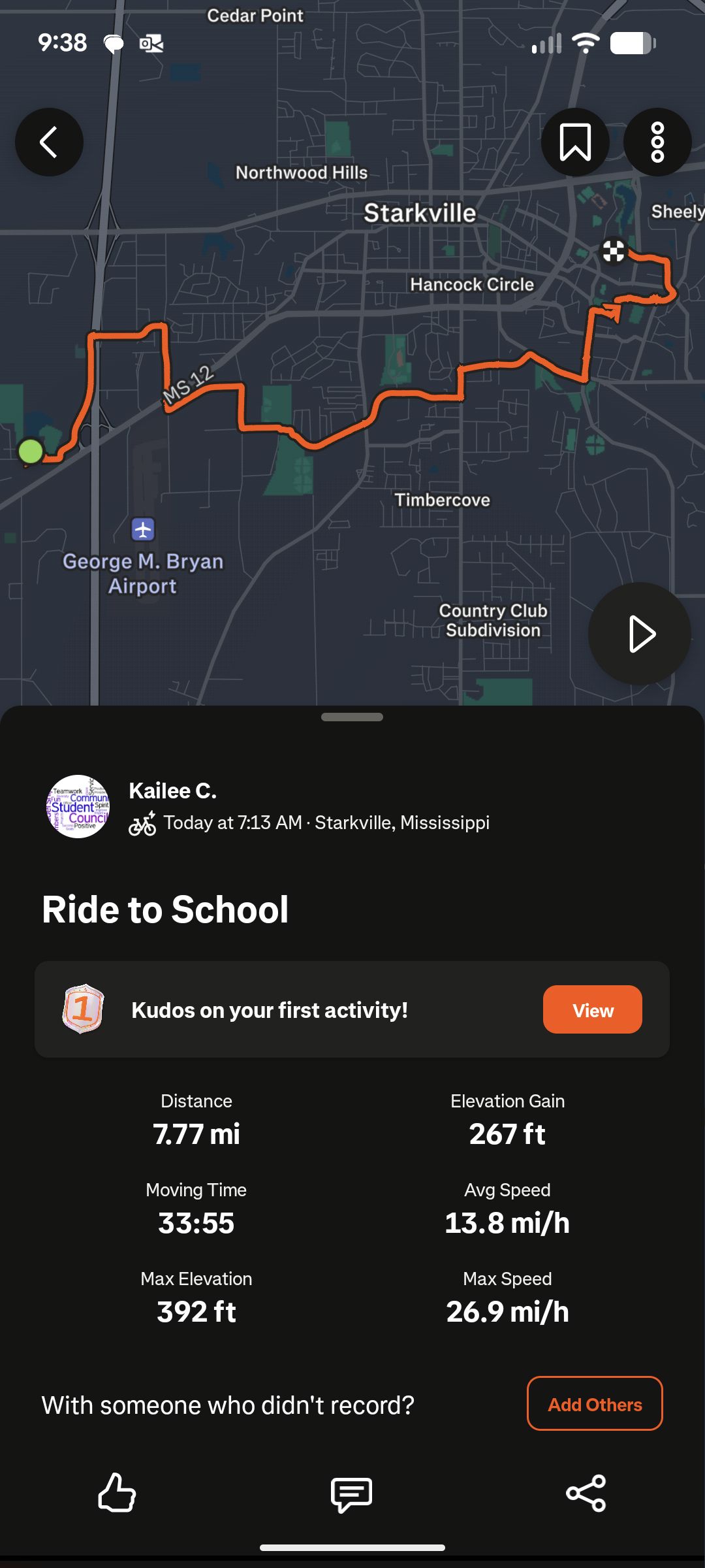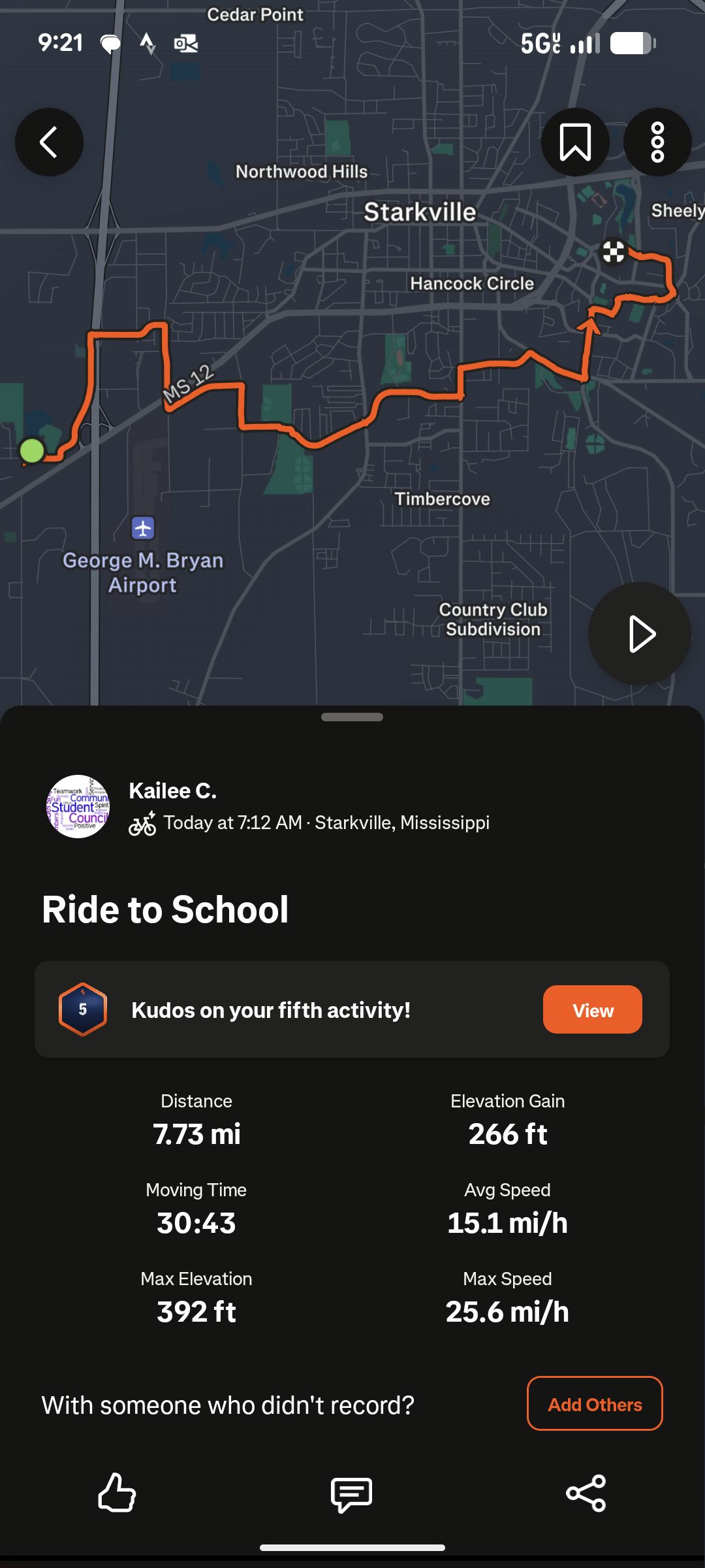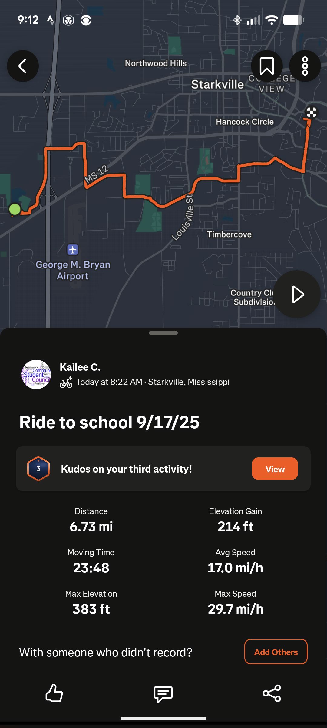 7.8 mi ride - Ride to School - Tuesday, September 16, 2025