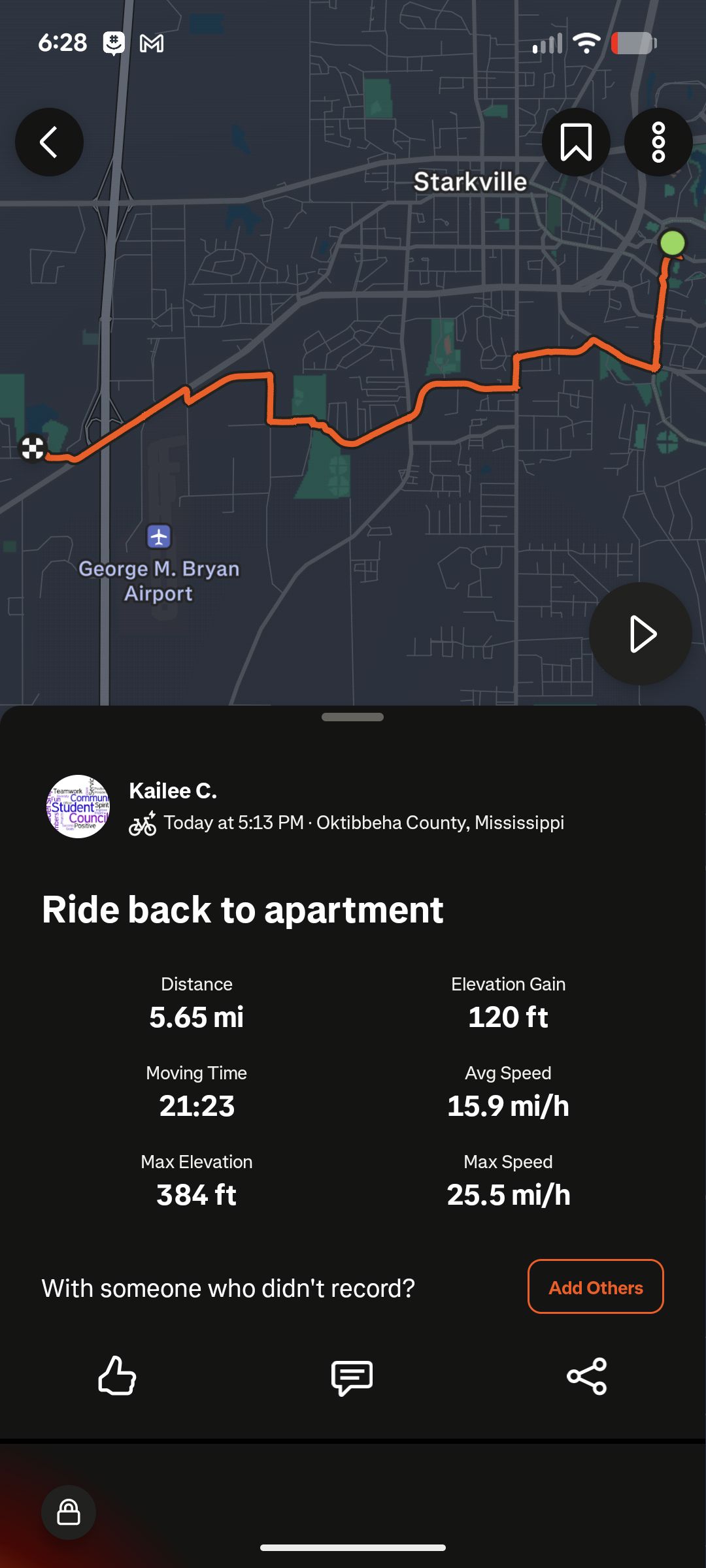 5.7 mi ride - Ride back to Apartment - Wednesday, September 17, 2025