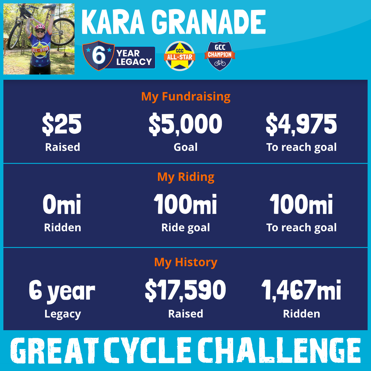 This September, I am embarking on my 6th year participating in the Great Cycle Challenge to fight kids' cancer!