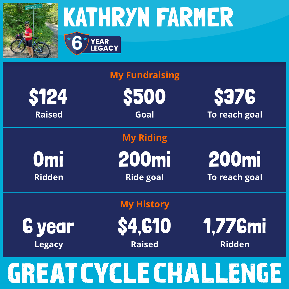 Kathryn James was a first cousin who died of childhood leukemia at age five. My daughter, Elizabeth, persevered with many challenging health issues since birth. Her spirit and life achievements inspire me to continue with this wonderful GCC community.