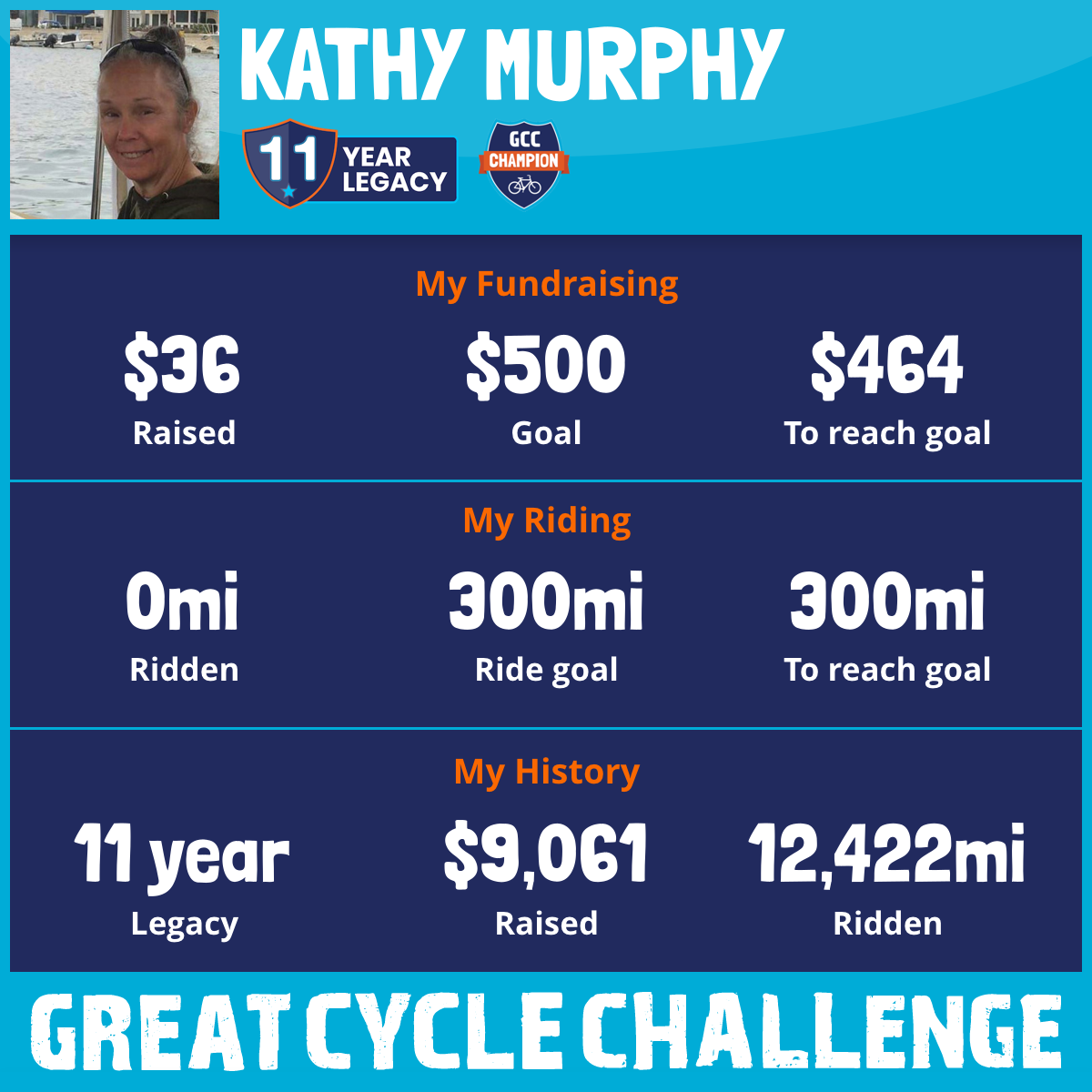I'm riding for all the Kids who are diagnosed with cancer. Many cancers are discovered months after birth. These little fighters endure many scary treatments for years, and want to win this fight!! Such tough little warriors, and their families are my inspiration. Lets contribute to finding cures for cancer together, for our GCC Kids. 🧡Kathy💙