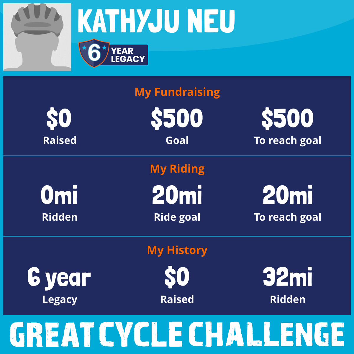 I am riding 20 mi in memory of Andrew. Please sponsor me and support my challenge to fight kids' cancer and save little lives.
