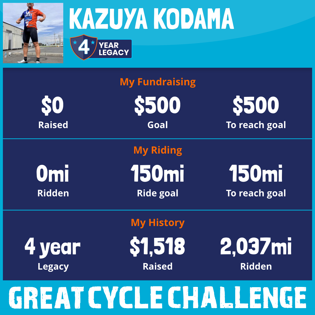 1,009 mi Ridden$500 Raised2024
